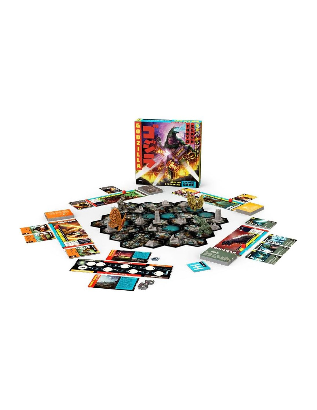 Eres el Kaiju más temible de la Tierra - Godzilla, Mothra, King Ghidorah y Megalon - luchando por la dominación como el monstruo más aterrador de Japón! Aplasta a través del paisaje urbano vintage de Tokio, desata ataques devastadores y lanza trenes, tanques y barcos de guerra a tus enemigos. Domina el estilo de batalla único de cada Kaiju para ganar dominación antes de que los humanos expulsen a los monstruos de la ciudad! El juego presenta una impresionante presencia en la mesa en 3-D con figuras a gran escala, edificios y un tablero de juego modular, ¡así que cada juego es único! Contenido del juego - 13 losetas de tablero de juego, 4 miniaturas de Kaiju, 4 tapetes de Kaiju, 4 mazos de Kaiju, 13 miniaturas de edificios, 6 cartas de evento, 74 fichas, 1 tapete de seguimiento de daño, 5 cubos de seguimiento, 1 marcador de destructor de oxígeno, 1 soporte de miniatura, instrucciones. Detalles del juego - Juego de Prospero Hall, juego de batalla de estrategia, Edades 10 y más, Para 2-4 jugadores, 45 minutos de juego.
