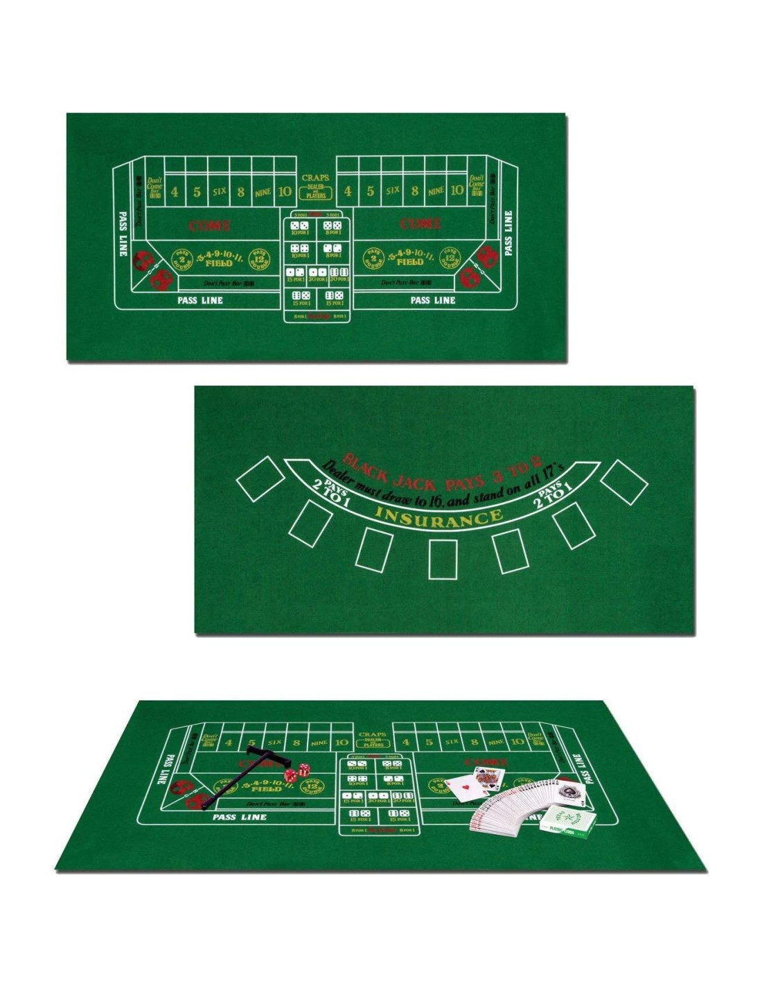 Beistle 50085 Blackjack/Craps Set. Asegúrate de que tu noche de casino esté completa con este divertido juego de blackjack y craps! Incluye un paño de juego de 18 pulgadas por 36 pulgadas (45,72 cm por 91,44 cm), un rastrillo de craps, cartas de juego, dados y una hoja de instrucciones.