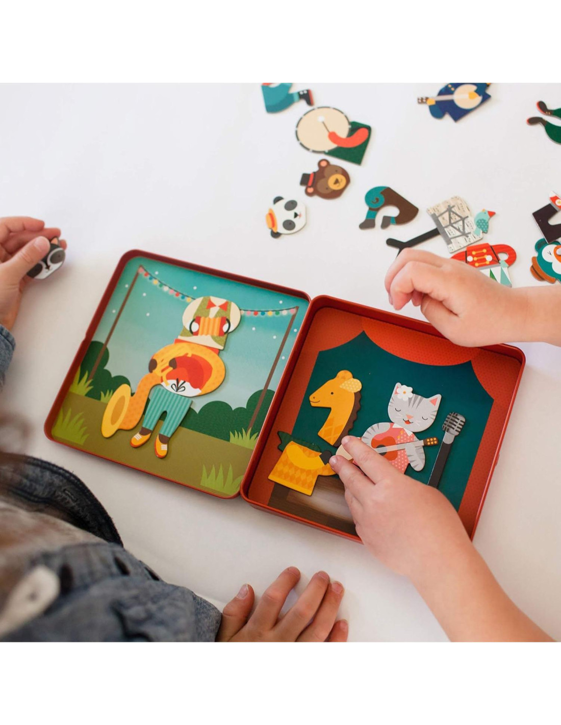 - GRAN ACTIVIDAD DE VIAJE - Dado que todas las piezas son magnéticas y se adhieren de manera segura a la lata, el Juego Magnético Mezcla y Combina Banda Animal en Movimiento es la actividad ideal de viaje para niños y pequeños para usar en el automóvil, en un avión o en la mesa de la cena.