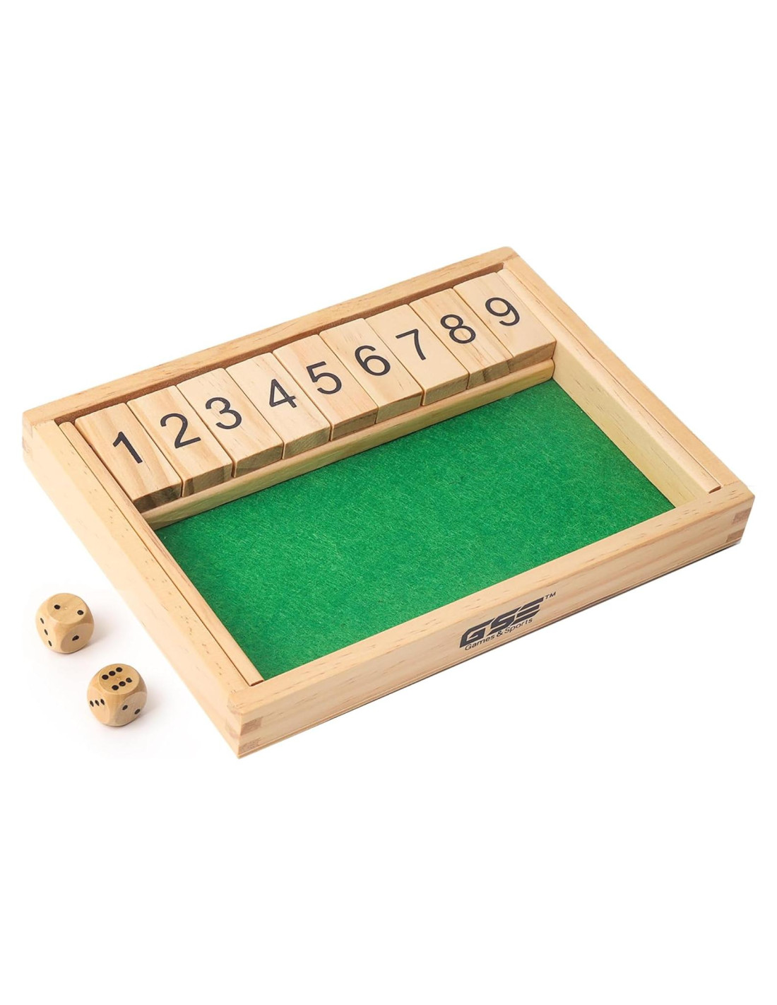 El tablero del juego cierra la caja tiene 9 bloques de números volteables en cada lado, con impresión completa, líneas claras y grosor uniforme. El tablero de madera cierra la caja está hecho de madera de pino sólida y duradera. Se añade un fieltro de calidad que amortigua el ruido en el interior de la caja. Se incluyen dos dados de madera. El tablero del juego también tiene cuatro patas de Eva en la parte inferior, asegurando que el tablero no se deslice o mueva, también protege la mesa o el tablero de juego de rasguños. El tablero del juego cierra la caja con superficie de fieltro podría reducir el ruido cuando los dados golpean el tablero. Se adjuntan almohadillas de fieltro en la superficie de la esquina inferior de la caja para proteger la caja.