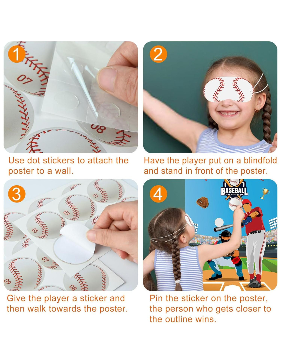 - Juego de fiesta temático de béisbol: 1*póster grande de béisbol, 1*tarjeta de béisbol, 30*stickers de béisbol, 1*antifaz de tela, 2*antifaces de patrón de béisbol, 1*hoja de stickers de puntos. Actividades familiares en el aula, juegos de cumpleaños para niños, favores de fiesta de béisbol, decoraciones de fiesta temáticas deportivas.