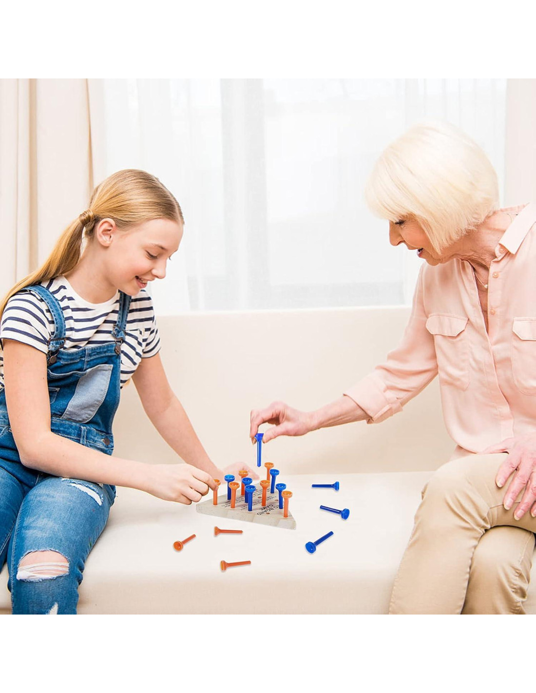 - LO QUE OBTENDRÁS: el paquete viene con 2 juegos de clavos de triángulo, y cada juego contiene 7 piezas de clavos de plástico amarillos, 7 piezas de clavos de plástico azules y 1 pieza de tabla triangular, que son suficientes para jugar y compartir con familiares y amigos