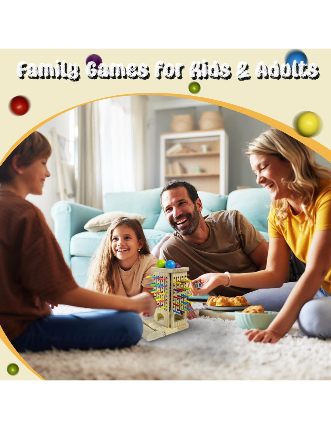 - [Fácil de Montar y Almacenar] La torre se pliega plana; las varillas y pelotas se organizan ordenadamente en su interior. Incluye dados para los palitos de recoger, tarjetas de conteo y piezas de apilamiento divertidas.
