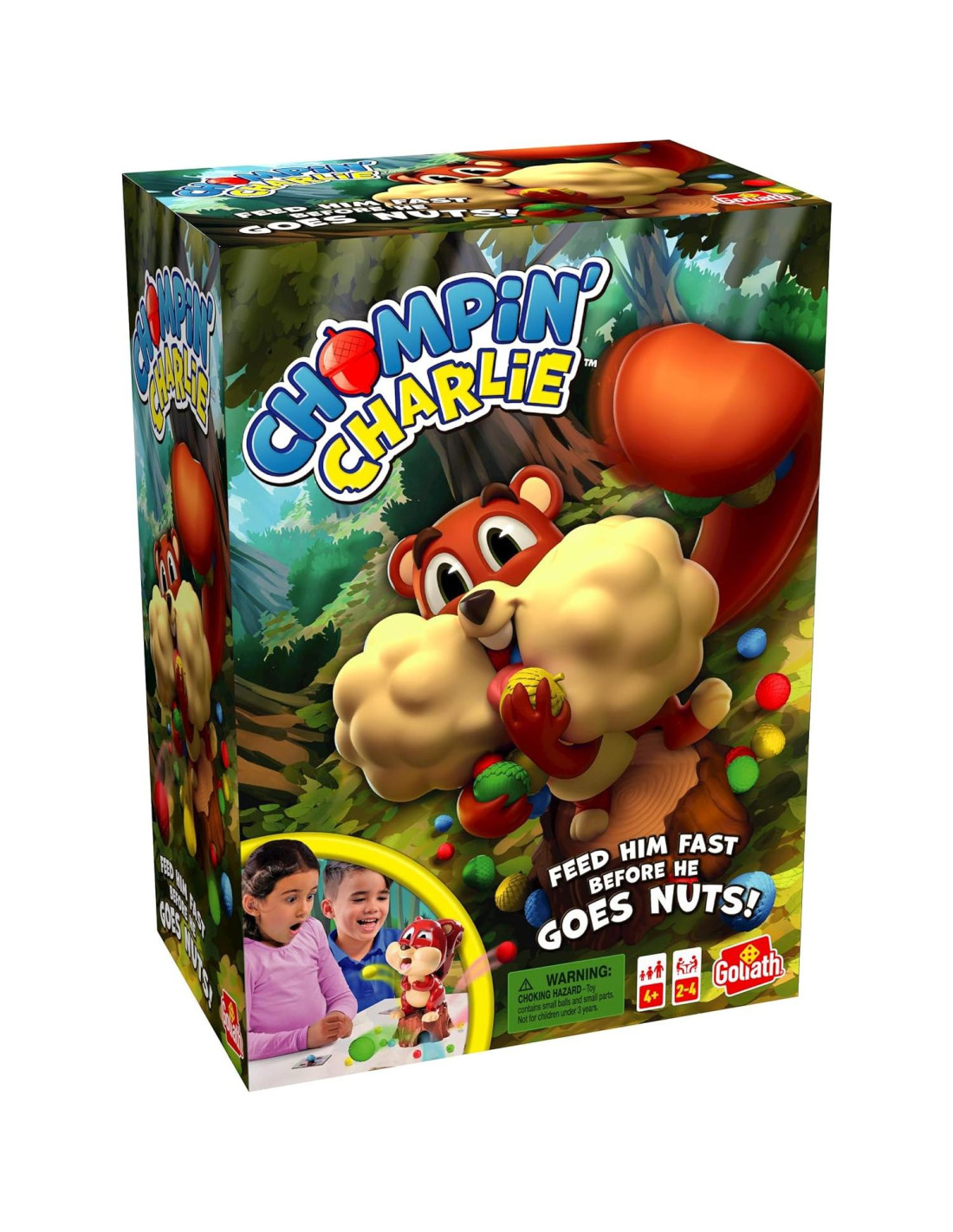 Se acerca el invierno, y es hora de que todas las ardillas recojan sus nueces. Lanza los dados, luego alimenta a Charlie con la bellota del color correspondiente. Observa sus párpados - cuando lleguen a la parte superior, ¡está listo para estallar! ¡Recoge las bellotas que se dispersan del árbol de Charlie tan rápido como puedas, y sé el primero en llenar tu escondite secreto para ganar! Para 2-4 jugadores, edades 4 y más.