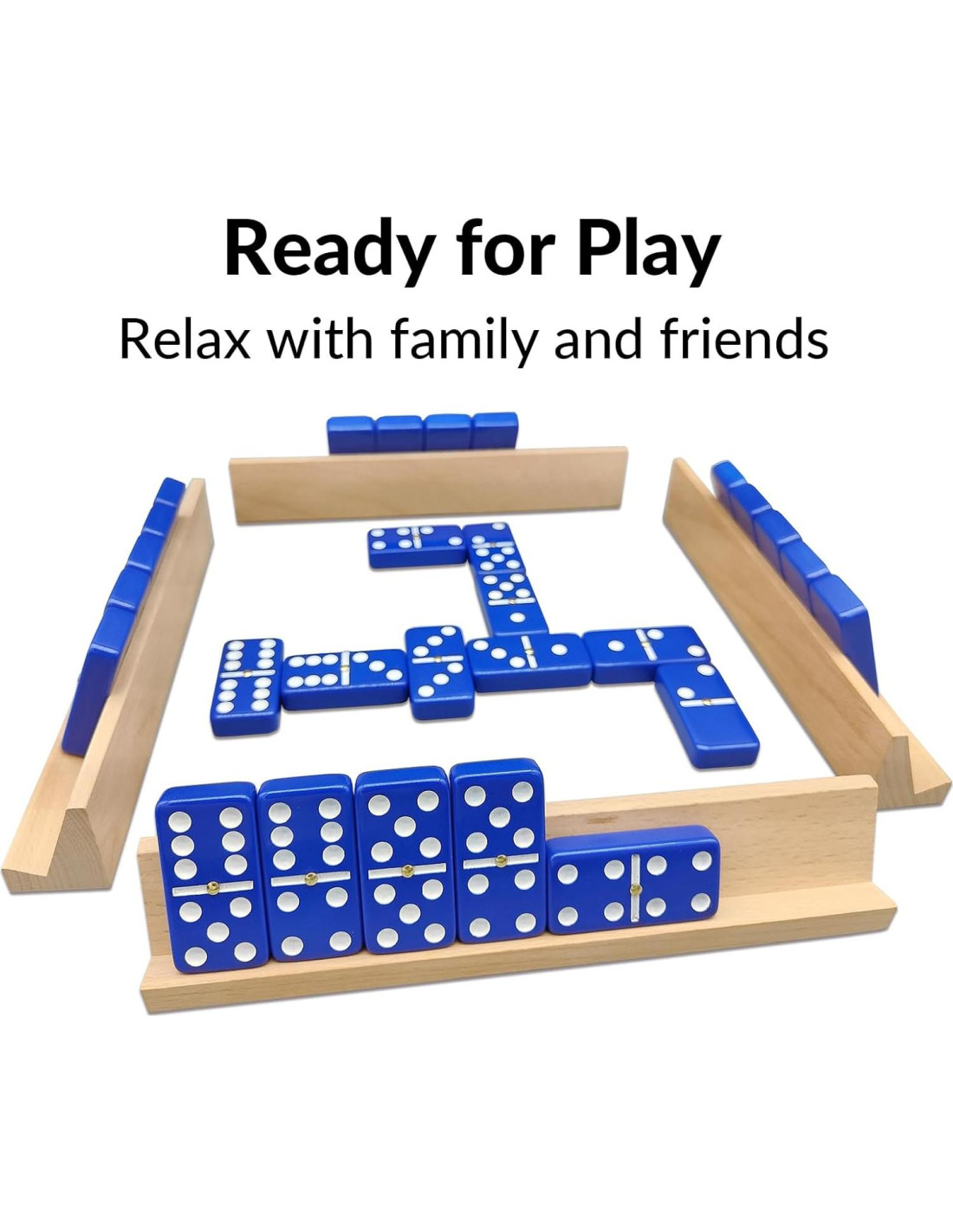- 4 Soportes de Madera de Haya: Los 4 soportes de madera están personalizados para el juego de dominó para adultos y cada soporte puede sostener 7 fichas. Los soportes están hechos de madera de haya de alta calidad, superficie sólida, duradera y sin olor.