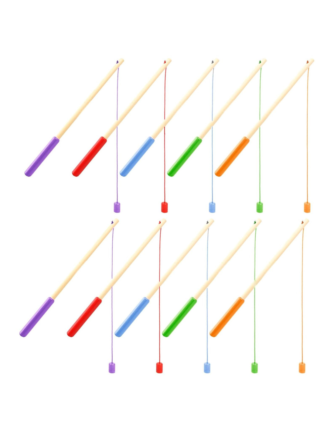 - [Qué Recibirás] : recibirás 10 pcs varas de pesca de madera, 5 colores, rojo, púrpura, azul, naranja y verde, colores brillantes y cantidad suficiente, suficiente para satisfacer tus necesidades diarias de uso y reemplazo, también puedes regalarlo a tus hijos, amigos, vecinos