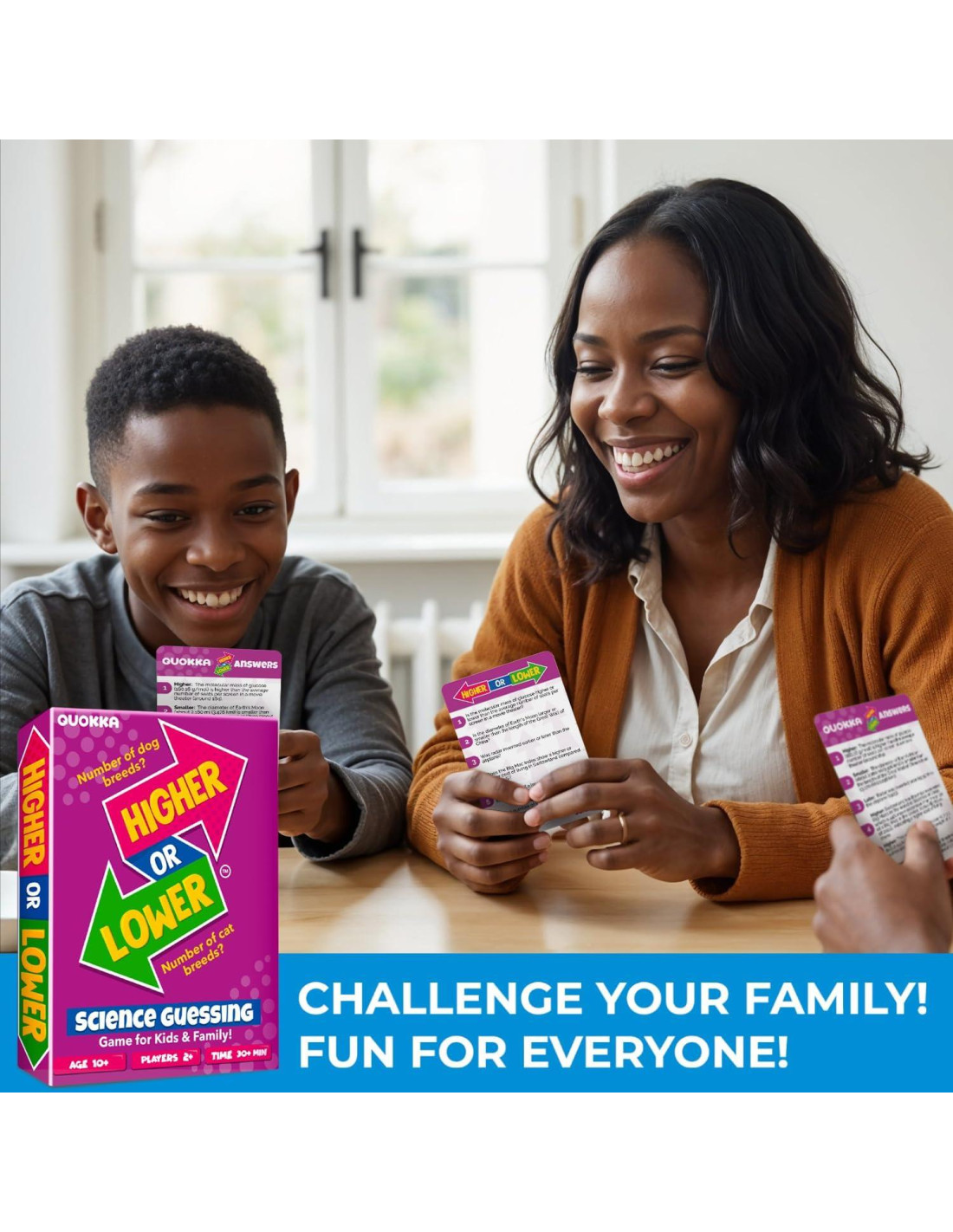 - INTERACTIVO Y EDUCATIVO: Promueve risas, conversación y aprendizaje, lo que lo hace ideal para la unión familiar, reuniones sociales y el desarrollo de habilidades de pensamiento crítico. Ejemplo: "¿Es el peso de todas las hormigas en la Tierra mayor o menor que el peso de todos los humanos?