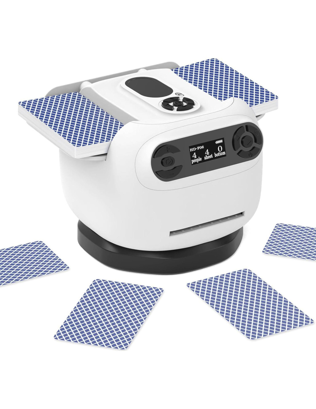 - [Compatibilidad con Cartas de Múltiples Tamaños y Diseño Amigable] Soporta cartas de hasta 2.60 x 4.33 pulgadas (6,60 x 10,99 cm), incluyendo cartas de póker, UNO, Mahjong y Monopoly. Compatible con Texas Hold'em, Bridge y más. Cuenta con una pantalla OLED de 1.3 pulgadas (3,30 cm) y teclas de función claramente etiquetadas para una fácil selección de modo, ajuste de conteo de jugadores y operación sin complicaciones, asegurando una experiencia de juego sin problemas.