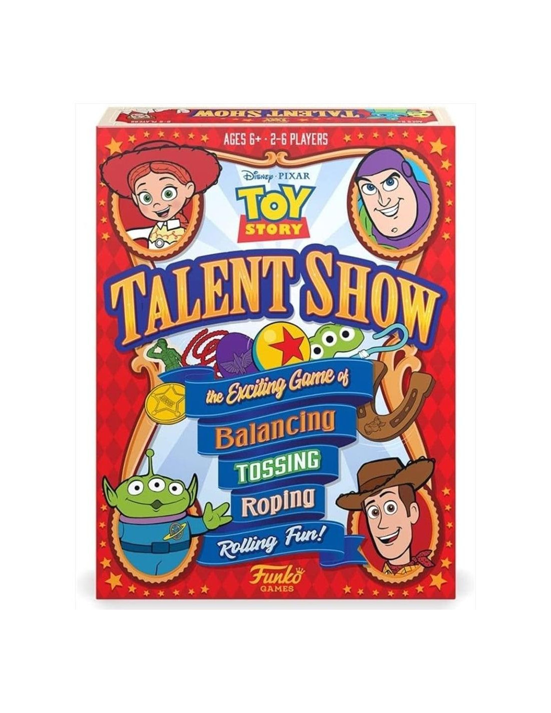 ¡Acércate y muestra tus talentos en una competencia amistosa de juego de cartas y desafíos! ¡Estarás equilibrando, lanzando, atando y rodando para ganar la mayor cantidad de Boletos de Premio! Los jugadores recolectan Boletos de Premio por realizar Talentos y jugar sus cartas. Al final del juego, el jugador con más puntos en sus Boletos de Premio gana!