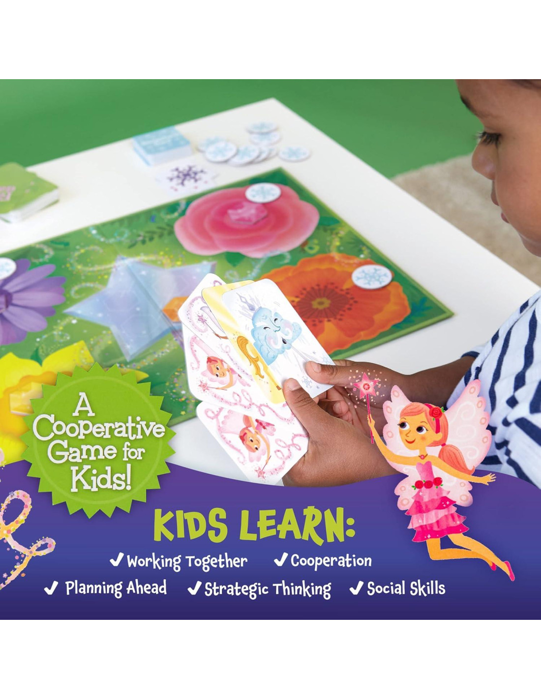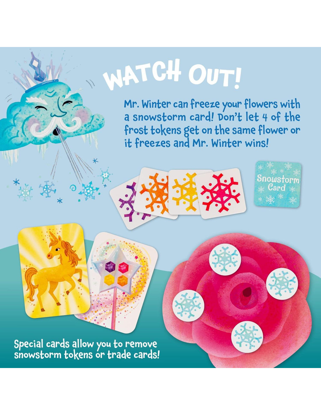 ¡El Sr. Invierno está tratando de congelar las flores preciadas de las hadas! Cooperen juntos para emparejar las Cartas de Hadas y reunir las Gemas Mágicas ocultas antes de que 4 copos de nieve caigan sobre una flor. Las cartas especiales permiten a los jugadores ralentizar el frío del Sr. Invierno. ¡Trabajen juntos para llenar la varita mágica de las hadas y desterrar al Sr. Invierno del jardín! En este juego de emparejamiento y recolección, los niños aprenden estrategias simples, seguir instrucciones, turnarse y valiosas habilidades sociales. ¡No se requiere lectura, lo que permite que los más pequeños también jueguen!
