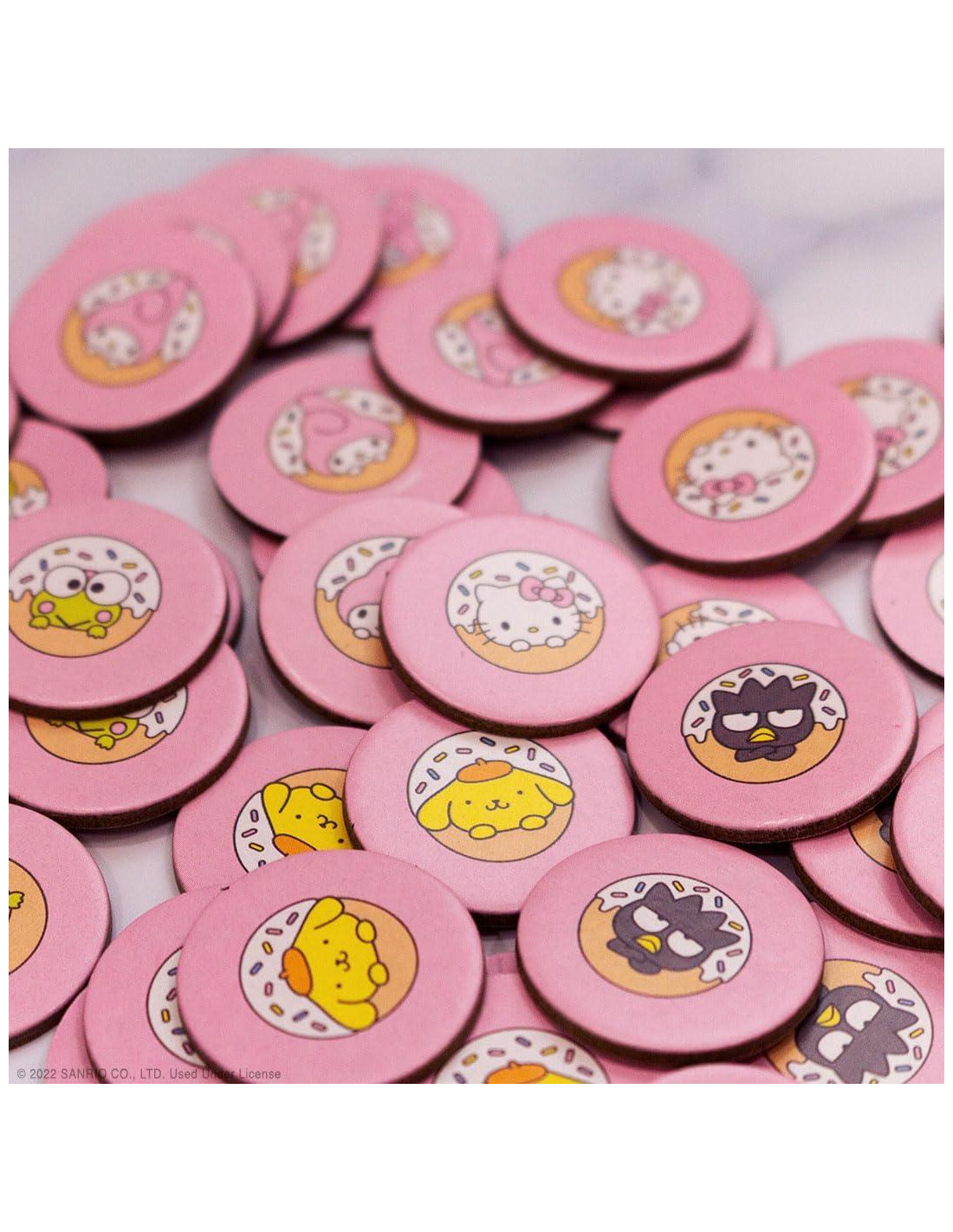 - Este juego coleccionable de Hello Kitty está oficialmente licenciado y presenta obras de arte e ilustraciones de personajes y referencias de la serie Hello Kitty y sus amigos.