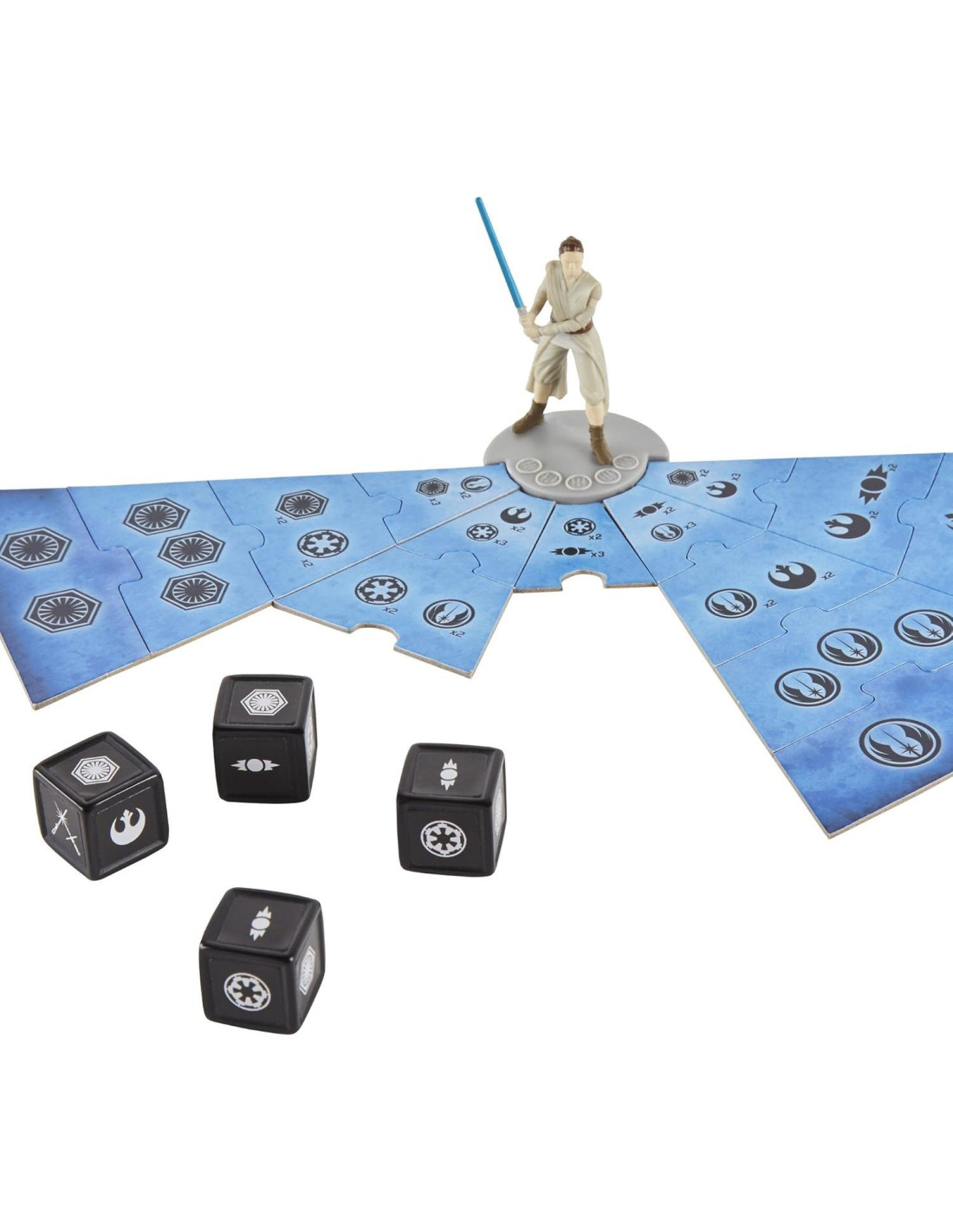 ¡Prepárate para un duelo! Es Rey contra Kylo Ren en esta versión intergaláctica del juego Yahtzee. La Fuerza es fuerte, pero ¿quién es más fuerte? Los jugadores emparejan los símbolos en el escudo de Fuerza de su oponente, mientras intentan penetrar las 4 piezas. Abre un camino y entrega un golpe final para ganar. ¿Prevalecerá el lado claro o el lado oscuro de la Fuerza en este emocionante juego de batalla de dados de Star Wars? Los productos de Star Wars son producidos por Hasbro bajo licencia de Lucasfilm Ltd. Hasbro Gaming y todos los términos relacionados son marcas registradas de Hasbro.