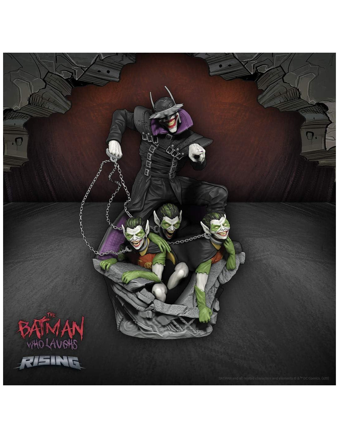 De la serie de cómics Dark Night Metal, el híbrido malvado de Batman y Joker, El Batman Que Ríe, está decidido a desatar a los Caballeros Oscuros y Barbatos en Prime. Siguiente en la serie cooperativa Ascenso, El Batman Que Ríe Ascenso, los jugadores deben trabajar juntos y lanzar dados para reclutar héroes y aliados clave para luchar contra una multitud de villanos, concluyendo con un enfrentamiento contra El Batman Que Ríe. Con una escultura coleccionable a todo color única en su tipo, es la experiencia definitiva de juego de mesa de Batman.