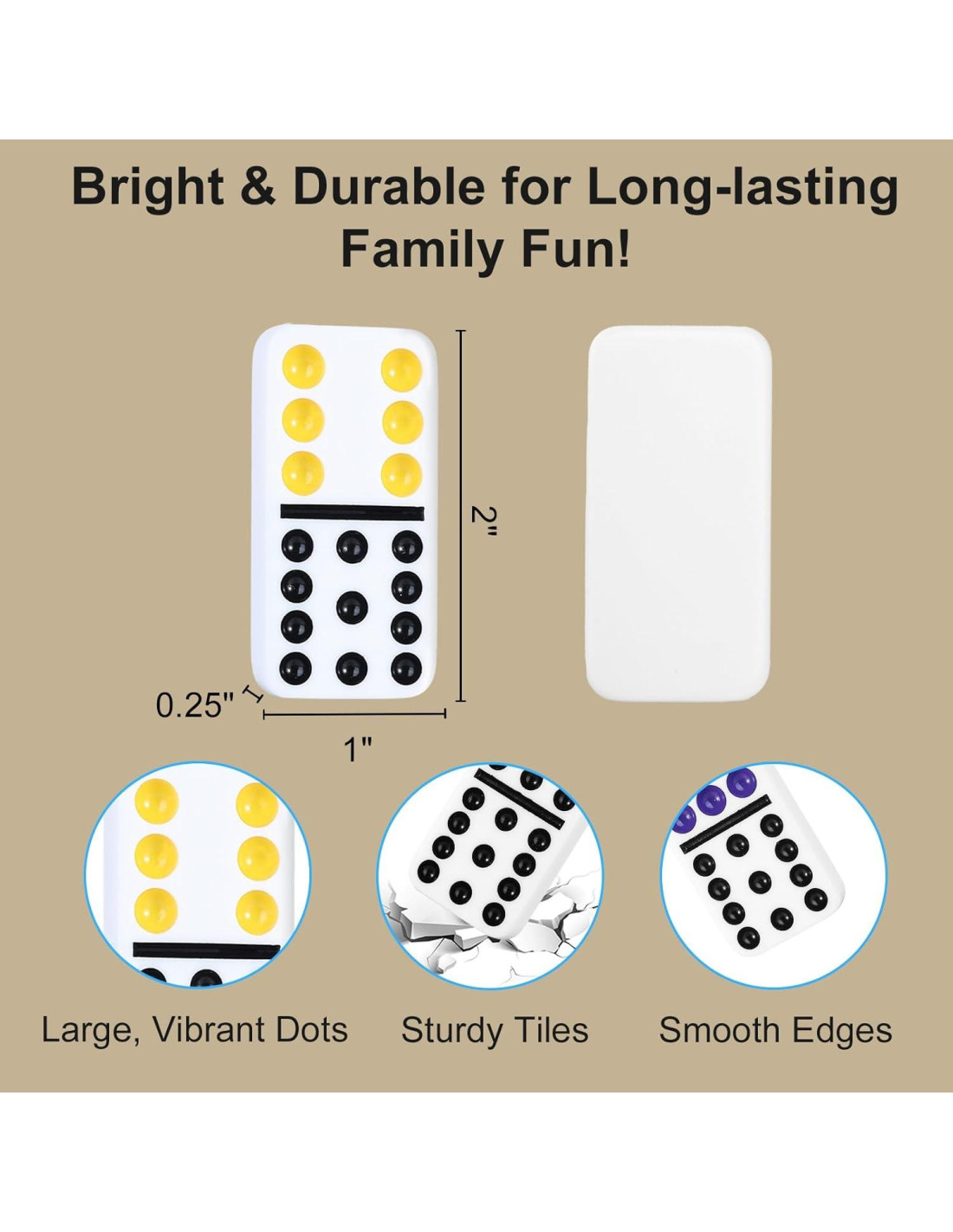 - Brillante y Duradero: Este juego de dominó mexicano cuenta con grandes puntos vibrantes para una fácil lectura, lo que lo hace perfecto para todas las edades. Construido con fichas resistentes y bordes suaves, ¡asegura diversión duradera para toda la familia!