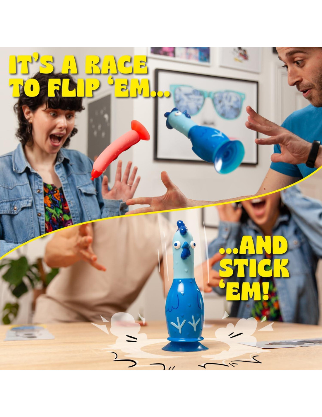 - ¡ES BRILLANTE COMO UN POLLO! Un juego familiar divertido y frenético para toda la familia. Solo toma 10 segundos aprenderlo... pero te garantizamos que estarás volteando y pegando durante horas.