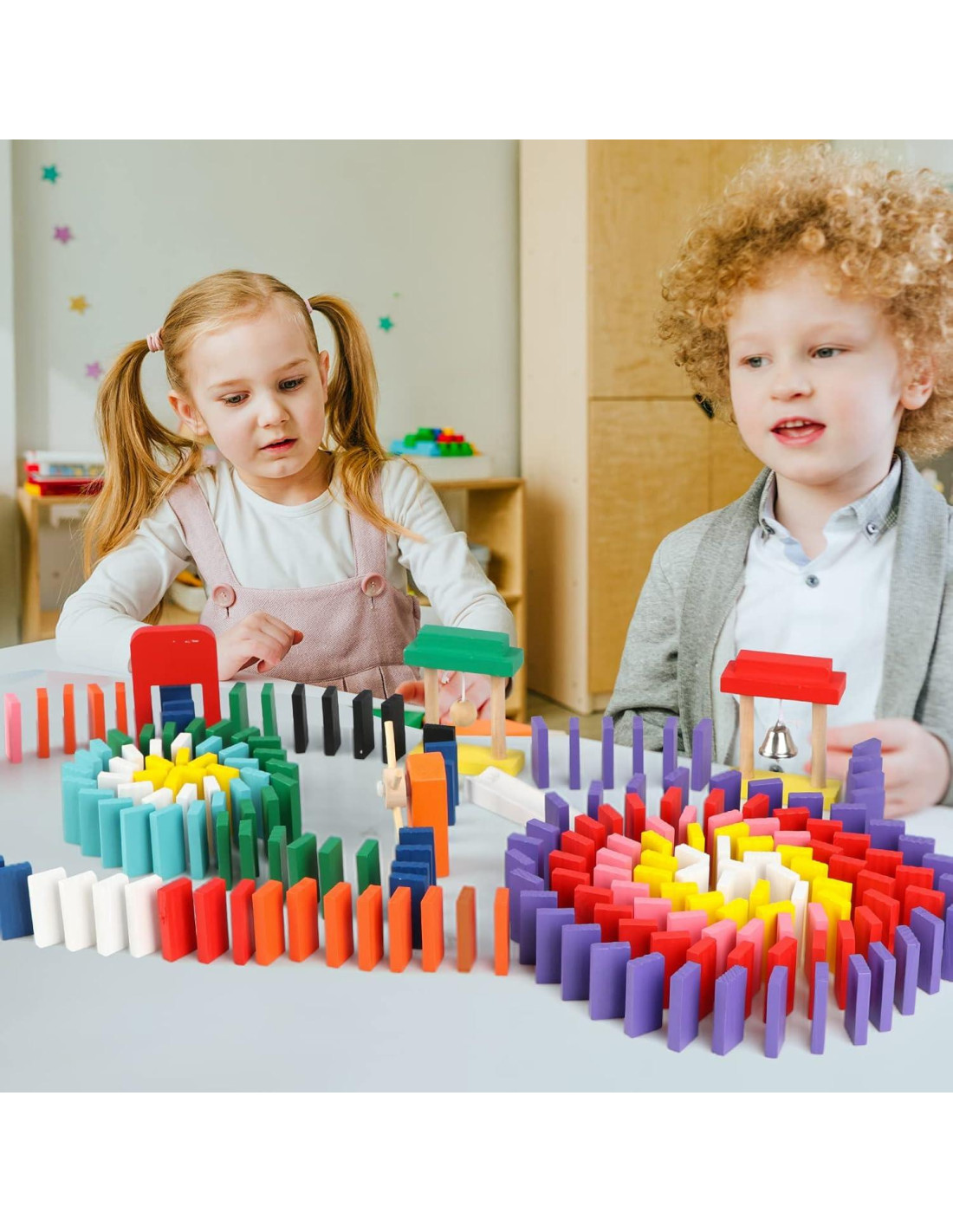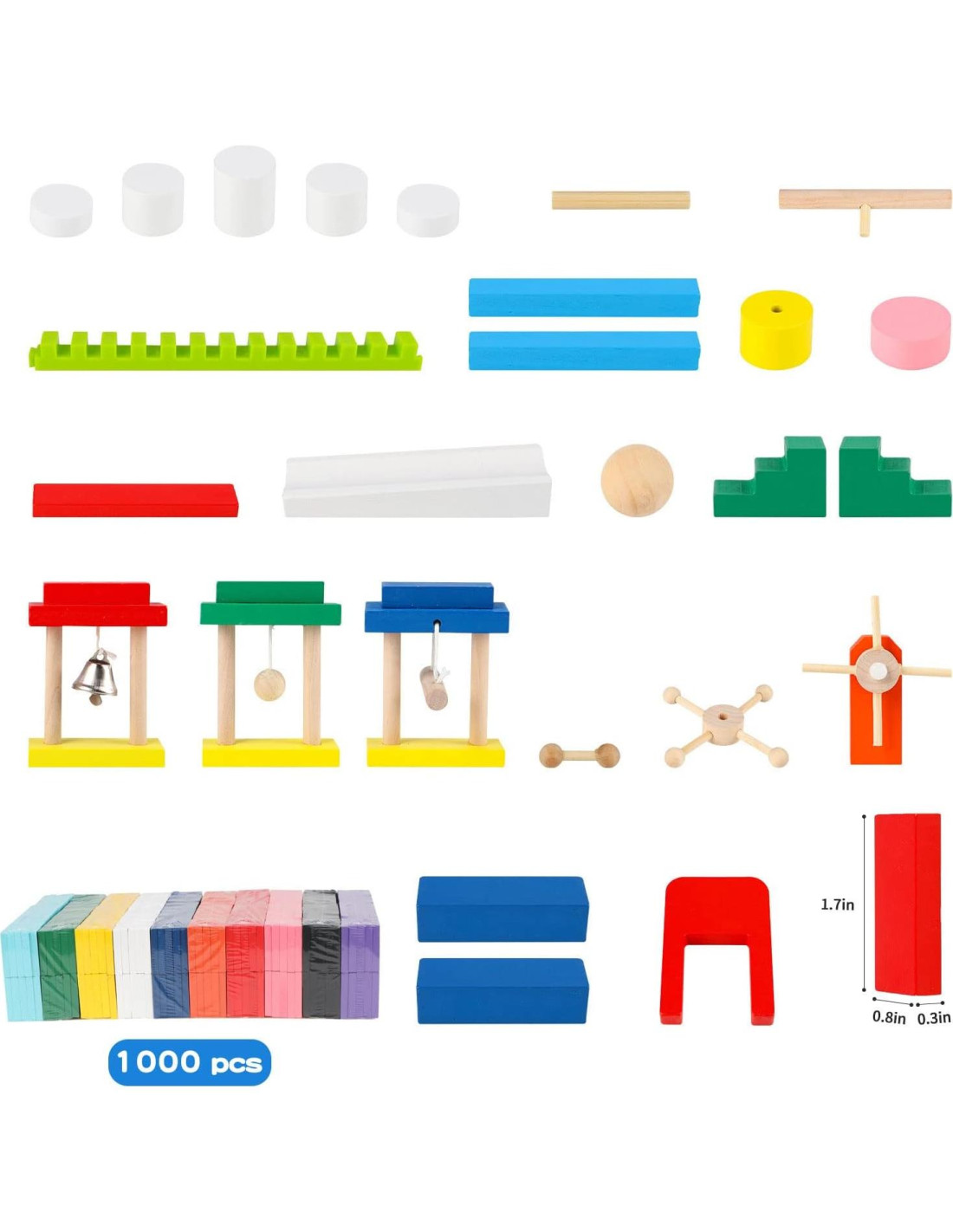 - PAQUETE INCLUIDO: Este juego de dominó a granel incluye 1000 dominós de madera, hay 10 colores diferentes y empaquetados por color, puedes abrir 100 a la vez. Viene con una bolsa roja para almacenar los dominós, y hay 11 juguetes de madera adicionales (rampas, escalones, columpios, etc.), que pueden mejorar la experiencia de los niños, añadir diversión. Tamaño del paquete: 16.65 x 12.48 x 3.15 pulgadas (42,23 x 31,70 x 7,62 cm), Tamaño de un dominó: 1.7 x 0.8 x 0.3 pulgadas (4,32 x 2,03 x 0,76 cm).