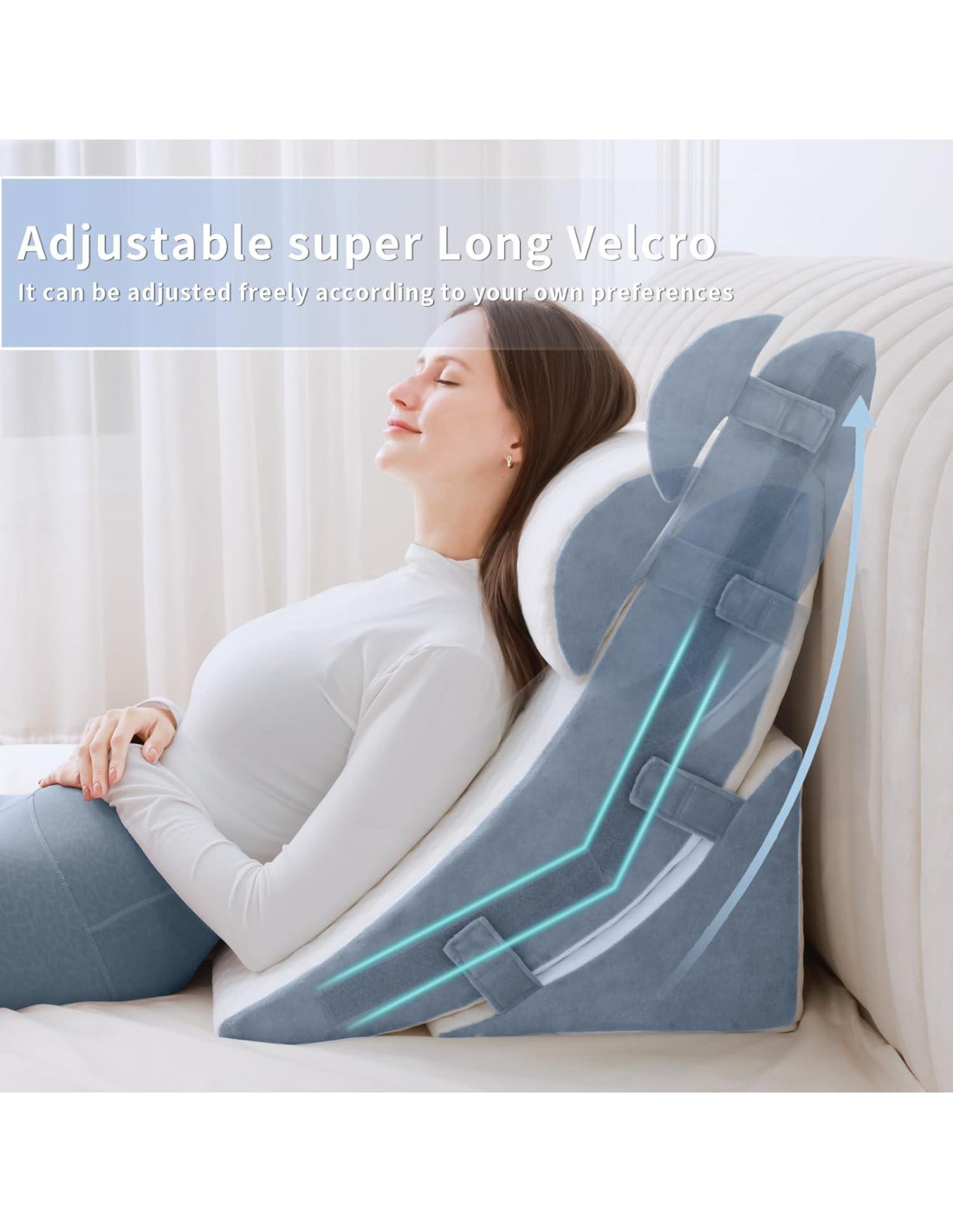 - DISEÑO ERGONÓMICO PARA ALIVIO DEL DOLOR: El cojín en cuña para después de la cirugía está diseñado ergonómicamente para proporcionar un cuidado integral para múltiples áreas del cuerpo (como cabeza, cuello, espalda y piernas), lo que puede tratar el dolor de espalda, dolor de cuello, dolor de hombros, reflujo ácido, ronquidos, recuperación de cirugía, congestión nasal, venas varicosas y más.