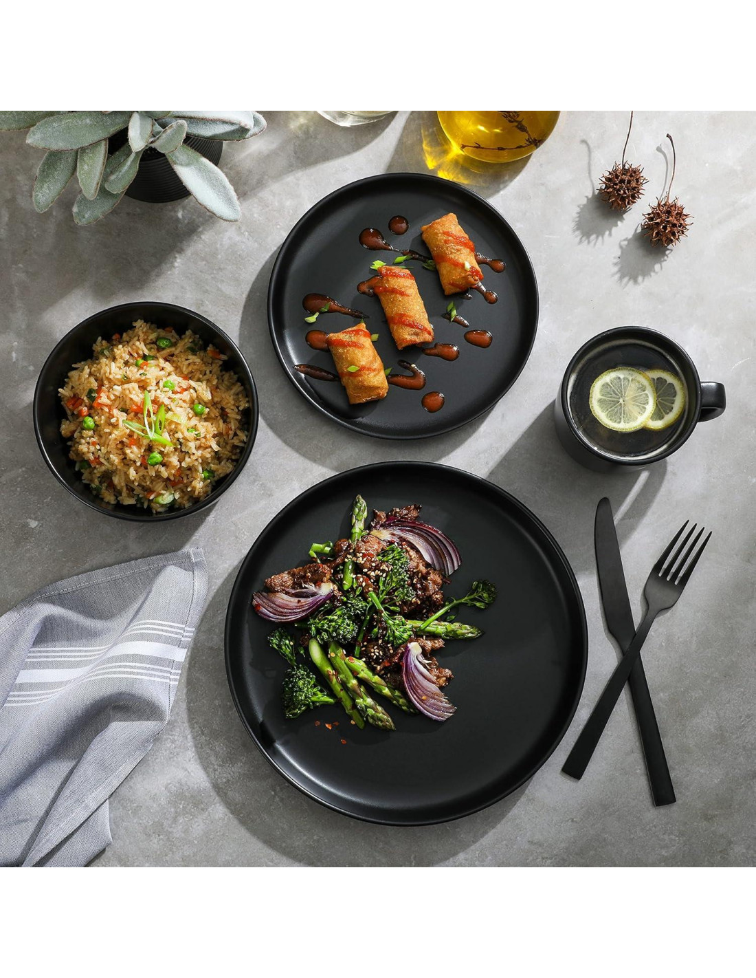 - DISEÑO ELEGANTE: cerámica con un suave esmalte mate que presenta un borde blanco roto a lo largo del borde, ideal para todas las ocasiones. Los bordes suaves ayudarán a prevenir que la comida se caiga de tu plato.