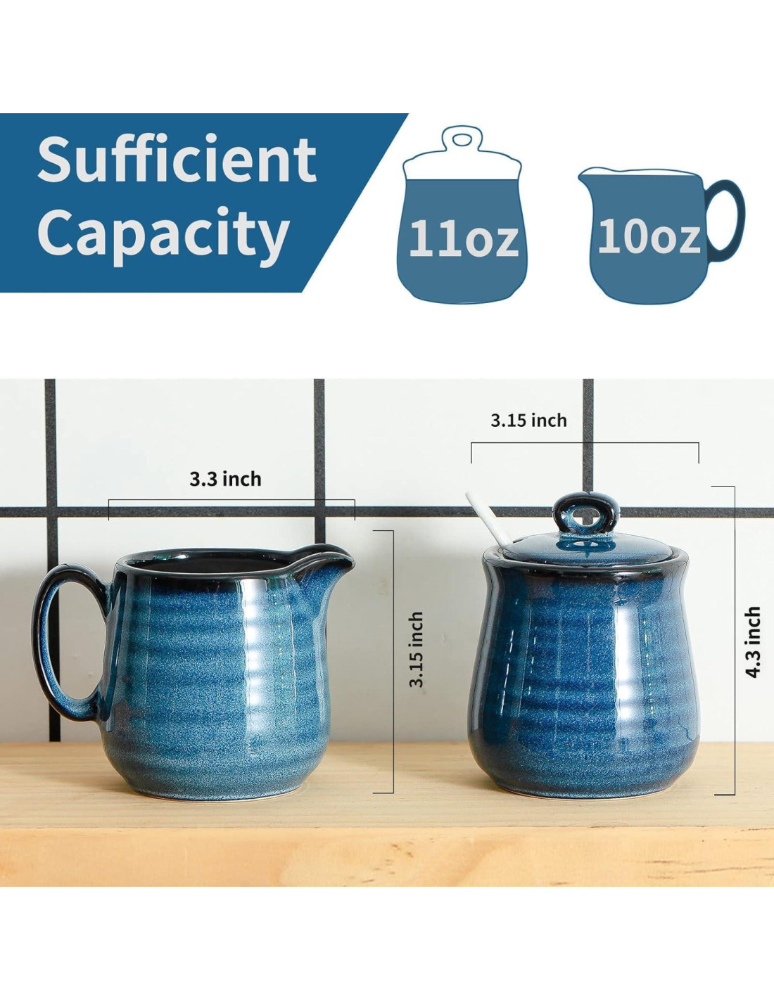 - Color Único: El color de nuestro juego de azúcar y crema es único en el mercado. El color azul marino único es un deleite para la vista. Además de ser una jarra de leche, también es un artefacto que se puede colocar en la mesa, cocina y barra de café para realzar la atmósfera artística del hogar.