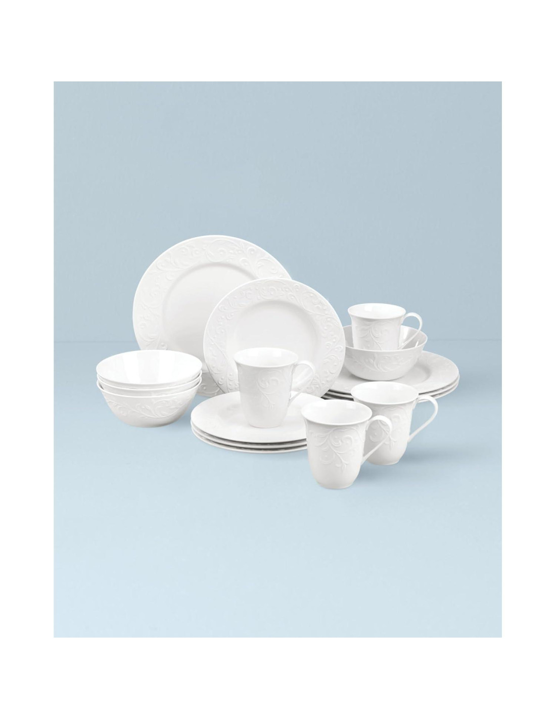 Para una cena simplemente elegante, prueba Opal Innocence Carved. Este patrón de vajilla presenta un motivo de scroll fluido en un relieve elevado sobre su superficie blanca prístina. Este set de 16 piezas está fabricado con tecnología resistente a astillas y es apto para microondas y lavavajillas para mayor comodidad. Viene con cuatro platos de cena, cuatro platos de acento, cuatro tazones y cuatro tazas. En Lenox, nos esforzamos por hacer que los momentos diarios de tu vida sean un poco más especiales. Inspirados en la herencia y diseñados para el presente, traemos una rica historia de artesanía a la vida moderna. Hemos sido parte de los hogares durante más de 130 años. Cada vez que compras Lenox, estás comprando una pieza versátil y atemporal elaborada con nuestro compromiso de un siglo con la calidad, la artesanía y la belleza. Ya sea que estés reuniendo a la familia para cenar, tomando un bocadillo a medianoche para ti frente al televisor o teniendo amigos en casa, Lenox es para momentos reales que perduran en productos que están destinados a vivir.