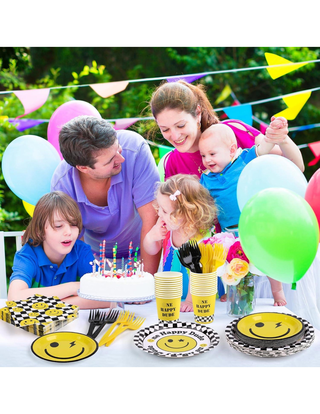 - Amplia gama de aplicaciones: la vajilla para fiesta de primer cumpleaños se puede utilizar ampliamente para diversas ocasiones, como fiesta de un tipo feliz, fiestas con tema de sonrisa, baby showers, picnics al aire libre y fiestas preppy