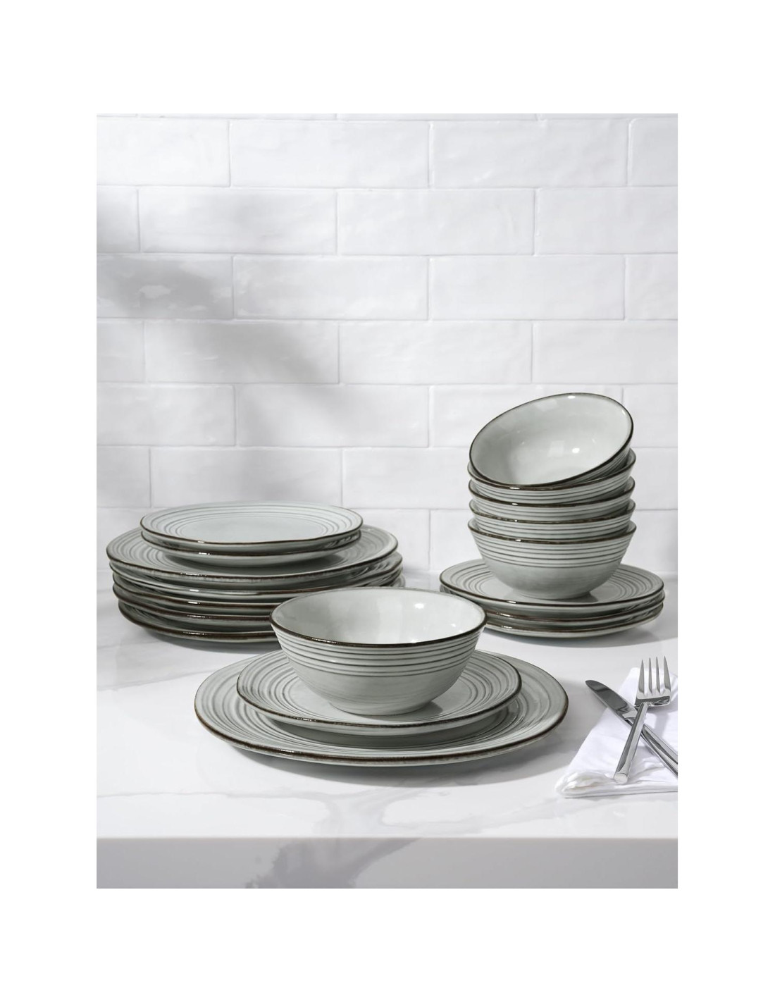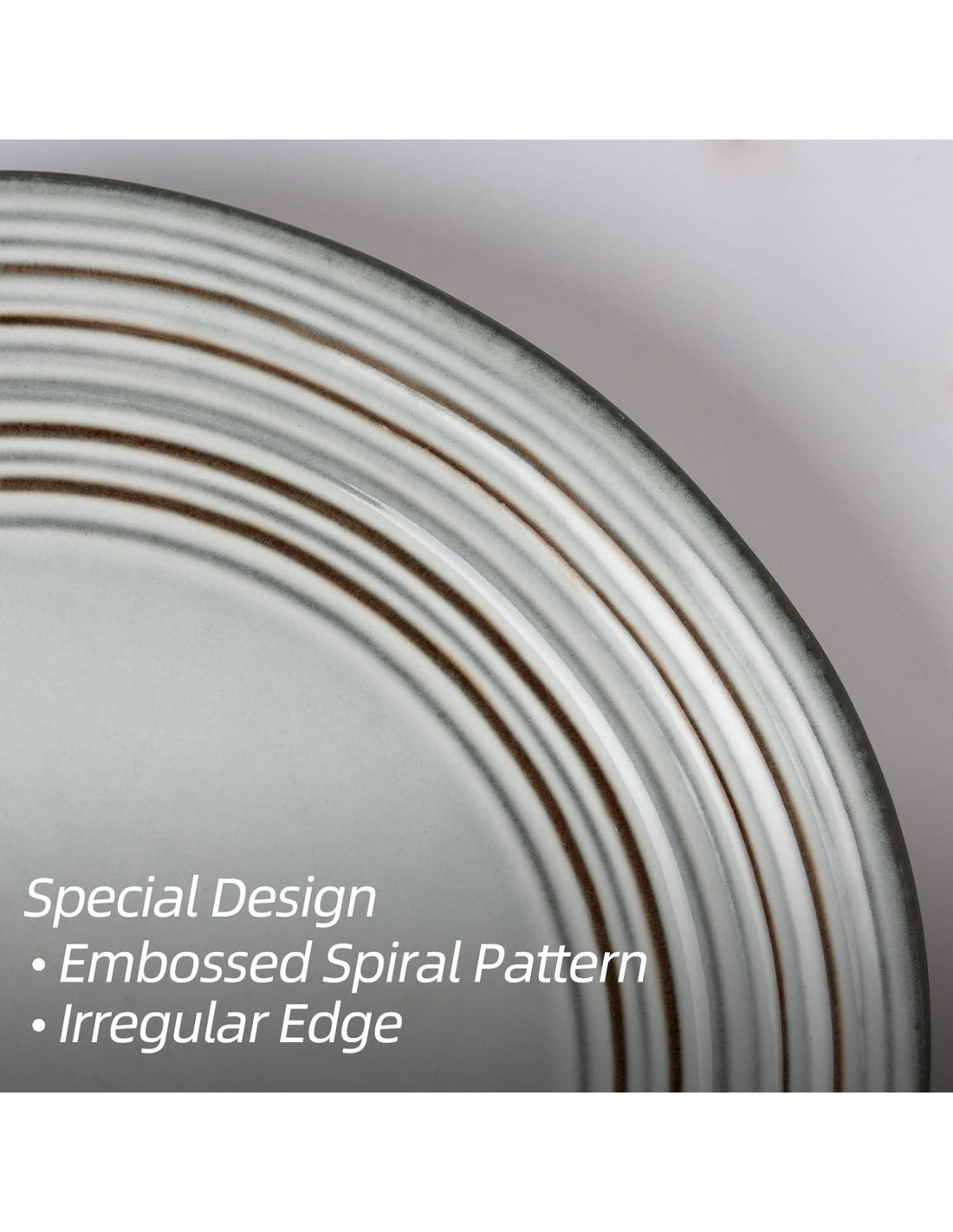 - Diseño Especial: El patrón espiral embosado único y el diseño de borde irregular, junto con un diseño apilable, hermoso y que ahorra espacio. El conjunto de vajilla de cerámica blanca con decoraciones moteadas es único