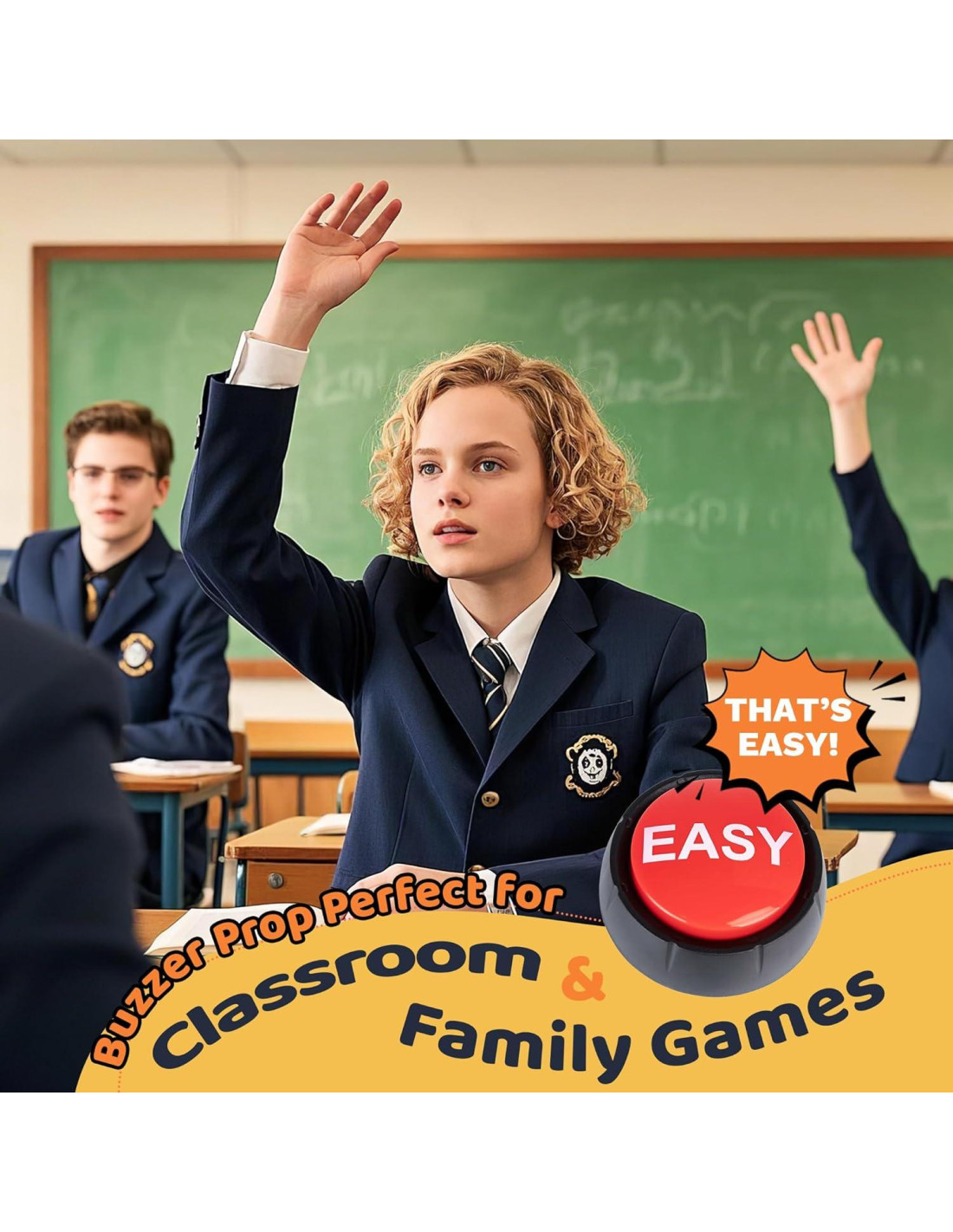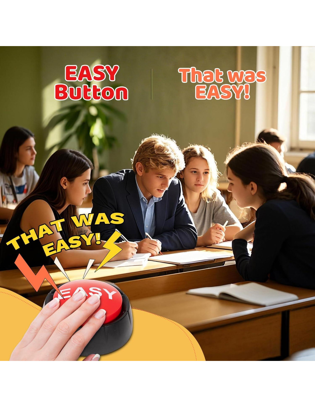 - [Botón Buzzer con Sonido] El Botón Fácil está hecho de un material muy duradero, ligero y funciona con batería. Presiona el botón para jugar '¡Eso es fácil!'