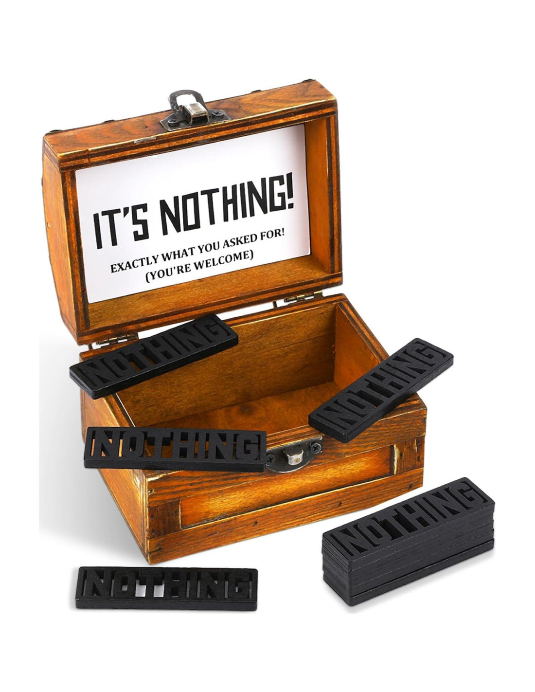 - ¿CANSADO DE COMPRAR REGALOS PARA LA PERSONA QUE TIENE TODO?- No busques más porque absolutamente nada está aquí para salvar el día. Dado que ya tienen todo, "NADA" es perfecto para aquellos que tienen todo. Disfruta de la mirada invaluable en su rostro cuando abran el práctico Cofre del Tesoro de Nada. Haz que tus regalos sean más divertidos y únicos. "¡NADA" dura para siempre!