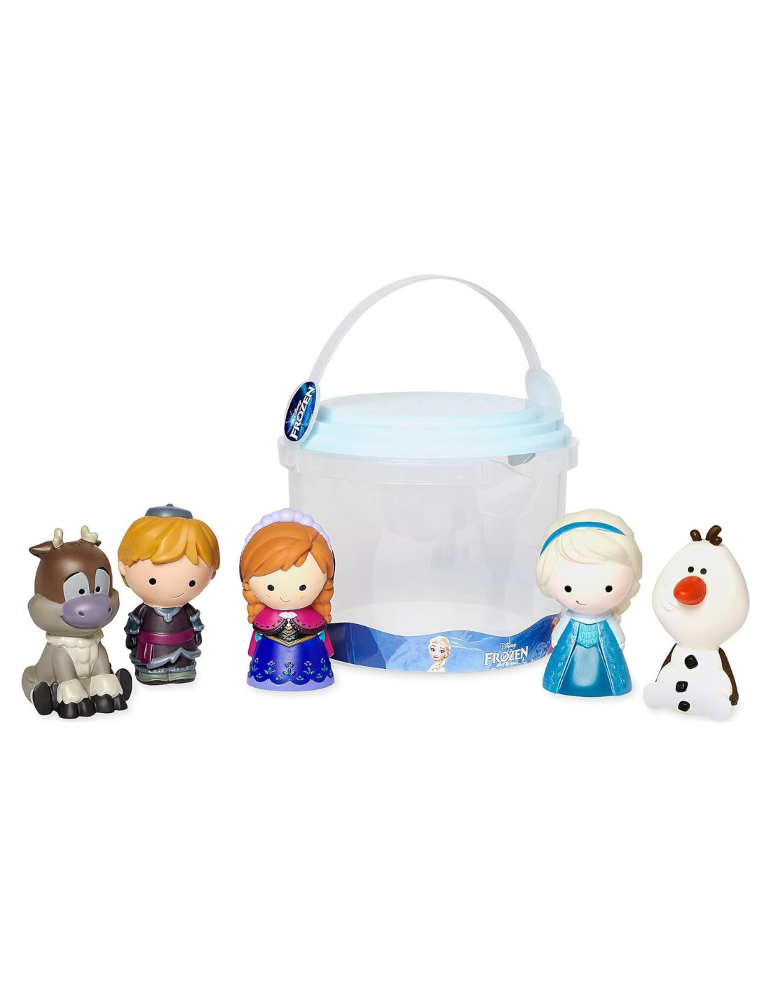 ¡La hora del baño nunca molestará a tu pequeño cuando esté chapoteando en la bañera con nuestro Juego de baño de Frozen! Alojado en un balde transparente, con una tapa de colador colorida, Elsa, Anna, Olaf, Sven y Kristoff están listos para derramar la diversión de Frozen.