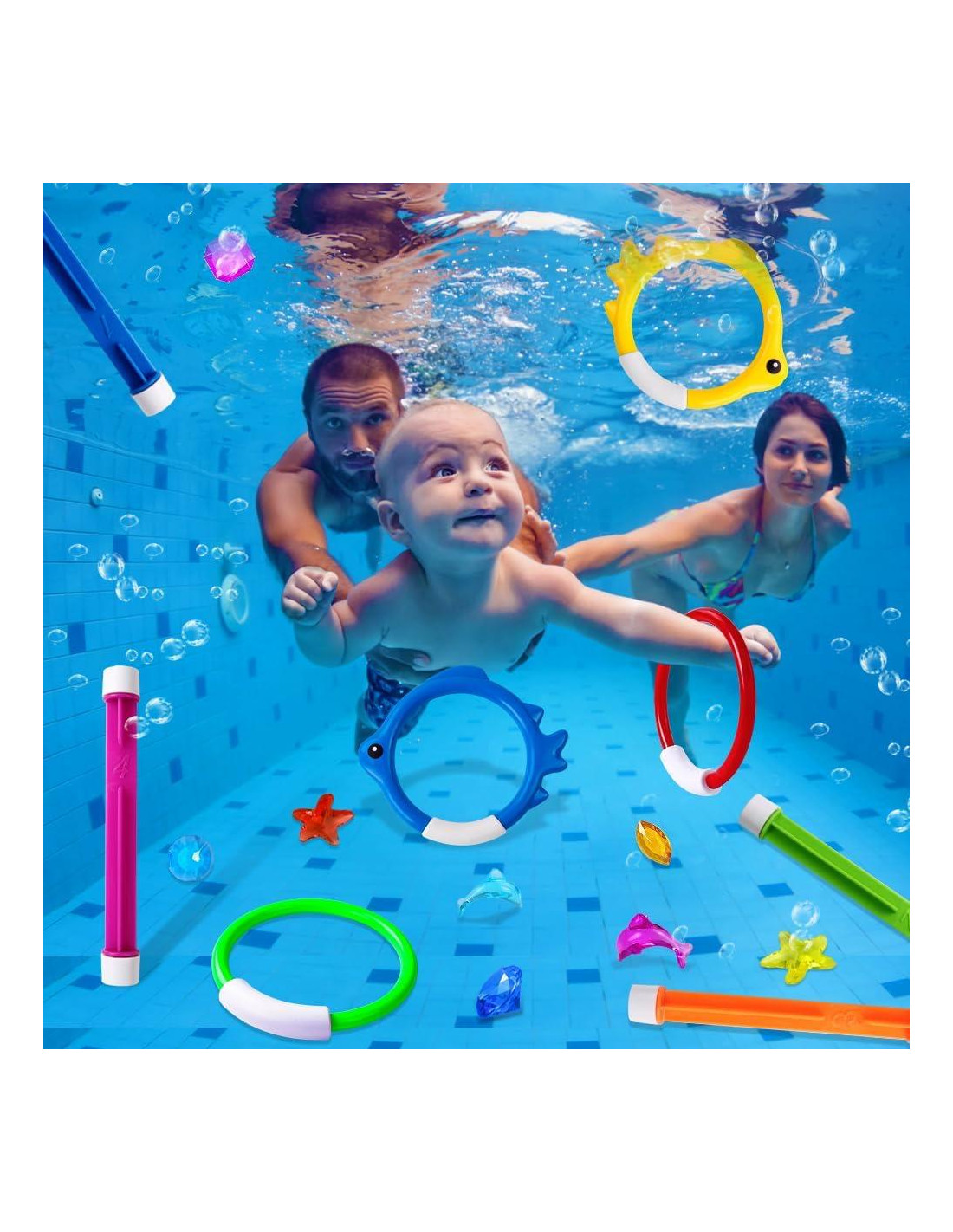 - Paquete de Valor: Recibirás un set de 18 piezas de juguetes de buceo, que incluye 4 palos de buceo, 2 anillos de piscina, 2 anillos de peces de piscina, 9 gemas de buceo (color aleatorio), 1 bolsa de almacenamiento de 24.9 x 30.0 cm. Un juguete de piscina perfecto para favores de fiesta, actividades al aire libre y viajes, también un buen juguete de baño para que los niños jueguen en la bañera.