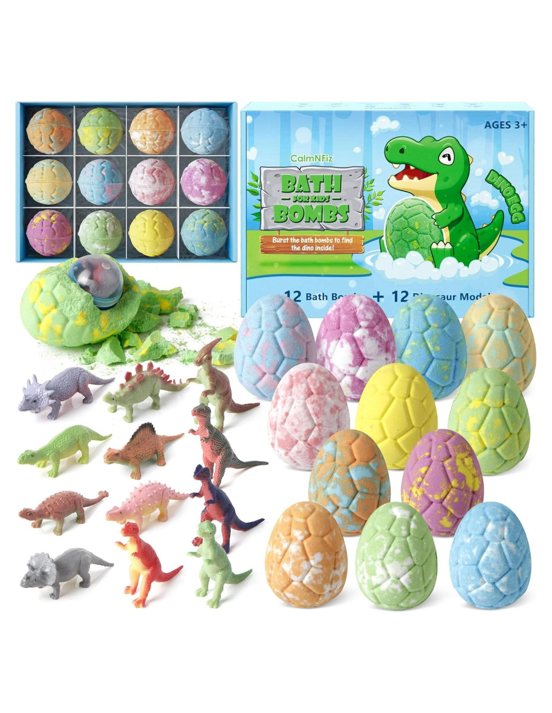 - [Regalo Asombroso] Las bolas de baño tienen forma de huevos de dinosaurio. Las bolas de baño y las cajas de regalo están bellamente empaquetadas para atraer tu atención. Regalo práctico para Pascua, cumpleaños y Navidad.