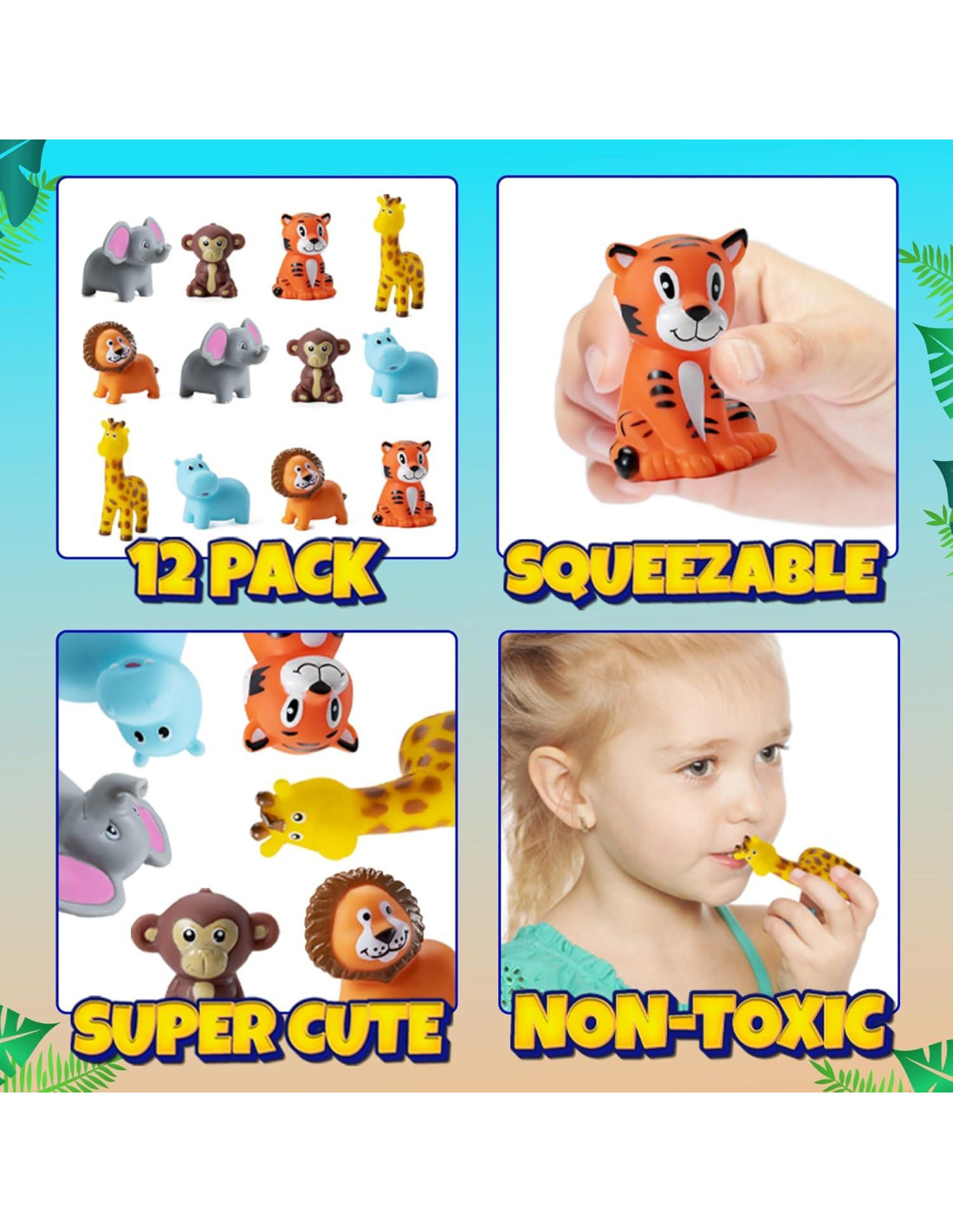 - PAQUETE DE 12 MINI ANIMALES DE ZOOLÓGICO DE VINILO: Este paquete de 12 Mini Animales del Zoológico incluye 6 animales diferentes: (2) Leones, (2) Jirafas, (2) Tigres, (2) Elefantes, (2) Hipopótamos y (2) Monos. Estos diseños alegres presentan colores llamativos, están empaquetados en una bolsa de polietileno y llegan exactamente como se muestra en la imagen. Deja que tus hijos se diviertan un poco con estos divertidos juguetes de animales de safari.