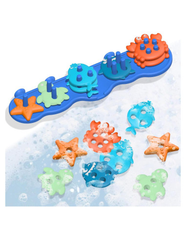 - Apoya el Desarrollo Temprano: Más que un juguete de baño, este conjunto ayuda a los niños pequeños a aprender formas, colores y conteo, mientras mejora las habilidades motoras finas y la coordinación mano-ojo. ¡Una combinación ideal de diversión y aprendizaje temprano!
