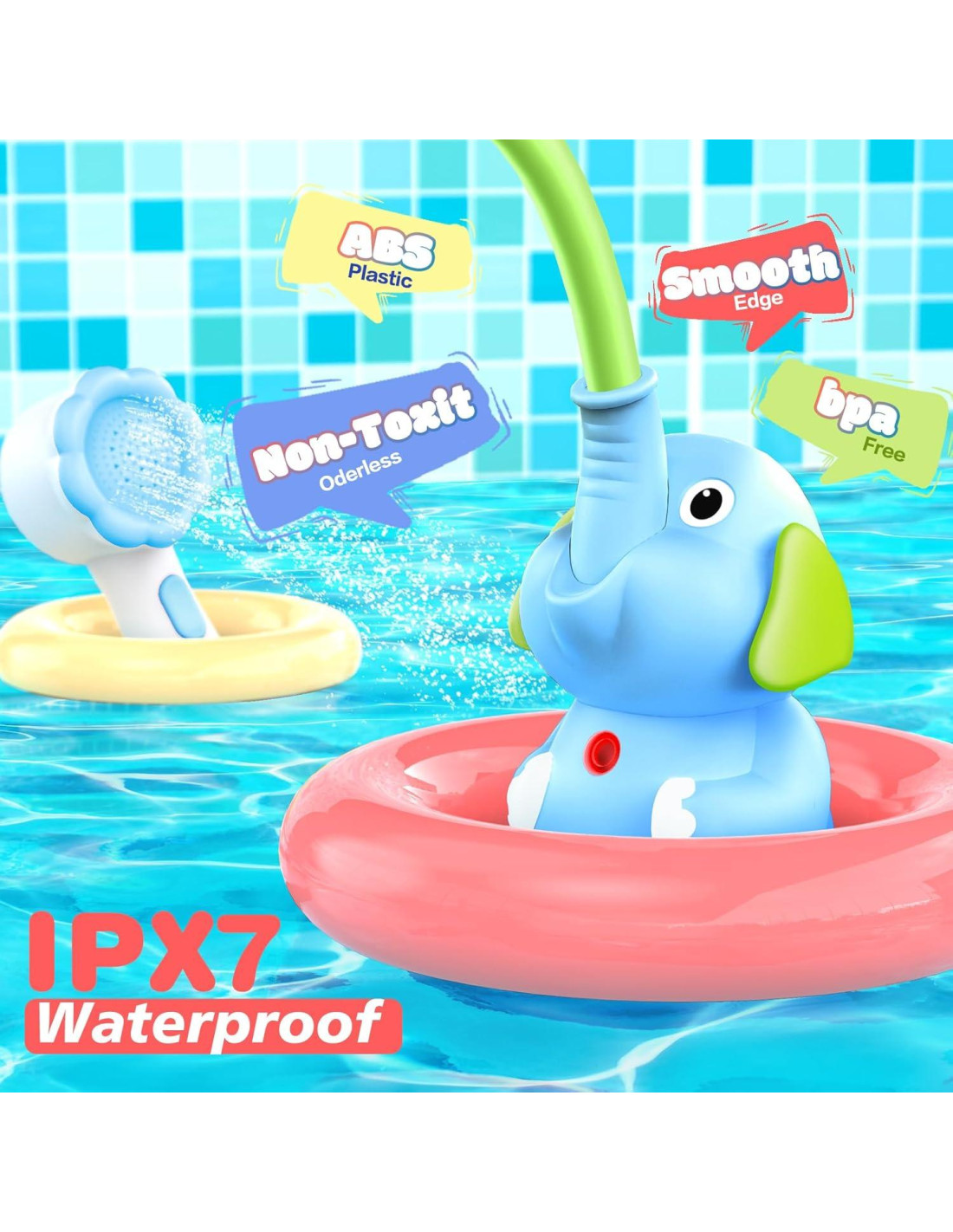 - [Divertido rociador de baño] Nuestro cabezal de ducha para bañera presenta un adorable diseño de elefante con un tronco creativo que rocía agua, perfecto para atraer la atención del bebé. Adecuado para recién nacidos y niños pequeños. Recomendamos cargar completamente las baterías cuando reciba el producto por primera vez.