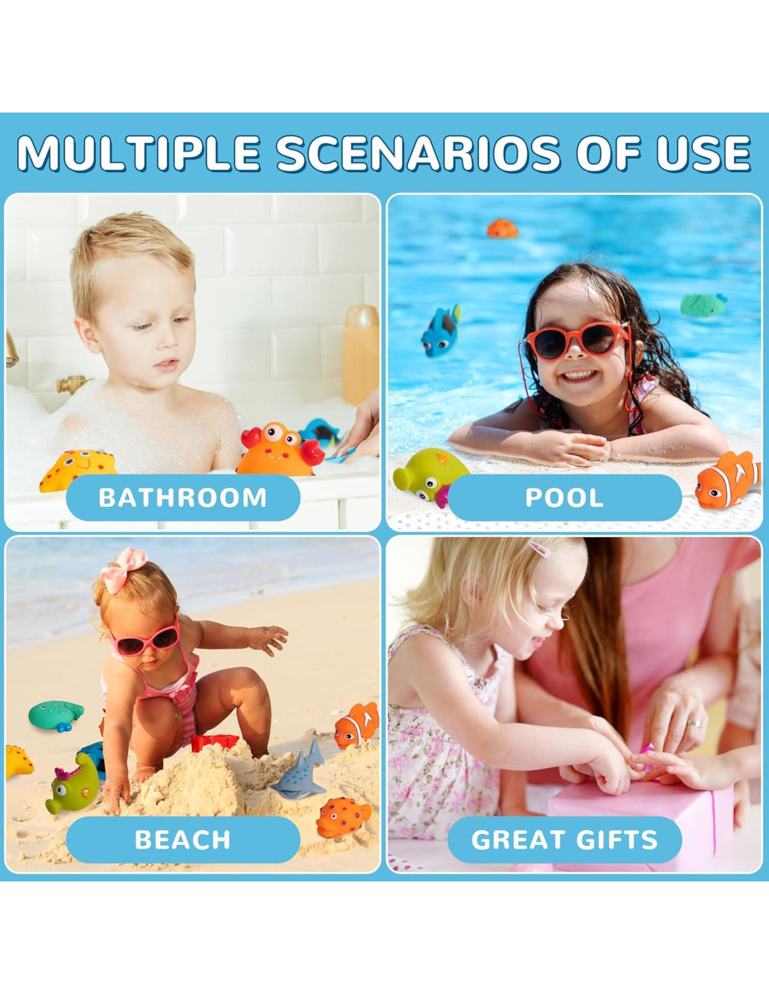 - DIVERSIÓN EN LA TINA: ¡Convierte el baño de su hijo en una aventura submarina! Estos juguetes de baño sin moho presentan adorables animales marinos que flotan y están sellados para mantener la humedad fuera.