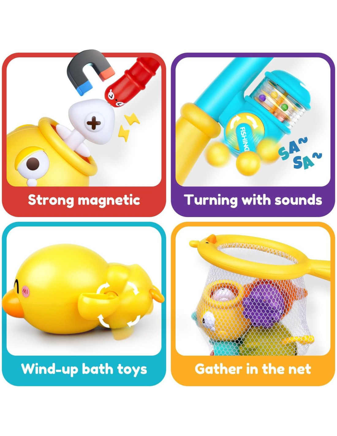 - [Juguetes de baño de pesca magnéticos] Este conjunto de juguetes de baño para niños de 1 a 3 años contiene 1 caña de pescar magnética, 3 peces diferentes, 1 pato de baño a cuerda y 1 red de pesca para atrapar los animales. Este conjunto de juguetes de agua simple pero divertido para niños de 1 a 3 años es perfecto para usar en mesas de agua, bañeras, piscinas infantiles y playas, o incluso en el suelo