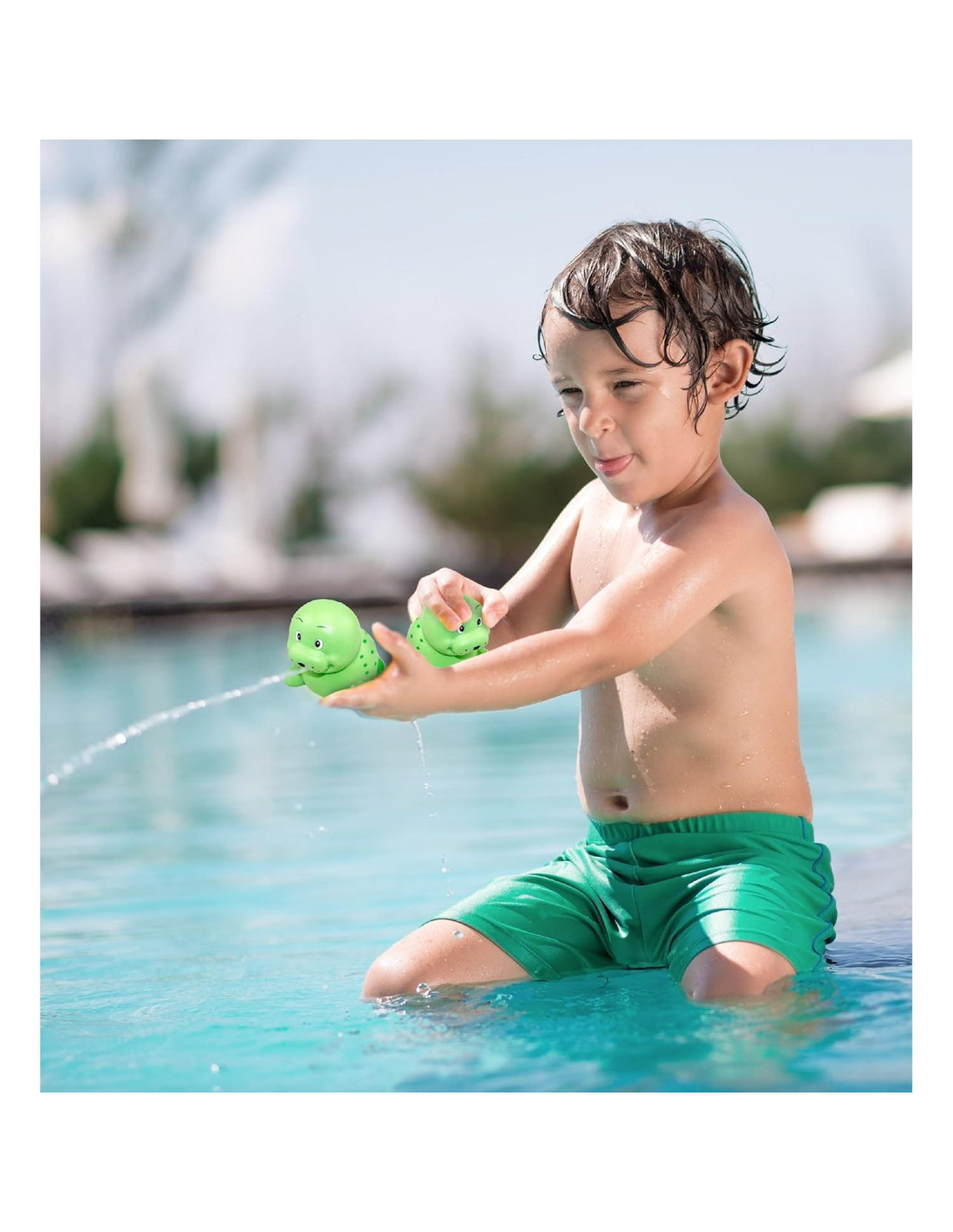 Divierte a tu pequeño con lindos juguetes de animales para la bañera que harán que quiera bañarse todos los días. El Juguete de Baño León Marino Verde de DolliBu es parte de nuestra colección de amigos de baño de vida marina y hace que cualquier actividad acuática sea una alegría. Ideal para la bañera, la piscina o la playa. Diseñado con colores vivos y fabricado con un tamaño perfecto para que las pequeñas manos lo sostengan y aprieten. Los lindos juguetes de bañera de animales o juguetes de baño son excelentes para educar a los niños pequeños y expandir su conocimiento sobre animales y colores. Juguete de bañera para bebés de tamaño perfecto que se puede jugar en la bañera, piscina o playa para diversión sin fin y también se puede jugar al aire libre durante el juego imaginativo. ¡Úsalo como decoración de juguete para una habitación temática de animales! Los flotadores en forma de león marino para bebés también son regalos lindos para los niños pequeños. ¡Haz que tus hijos esperen con ansias la hora del baño! Los juguetes de baño son perfectos para los niños que disfrutan pasar tiempo en el agua. Un juguete divertido para jugar con hermanos y amigos en una bañera o piscina. Perfecto para padres que quieren hacer de la hora del baño una experiencia divertida y educativa para sus hijos. Regalo ideal para futuras madres o como obsequios en fiestas infantiles. Incluye 1 Juguete Amigo de Baño León Marino Verde para niños. El juguete de baño de vida marina presenta bordes suaves, redondeados y lisos para garantizar la seguridad de los niños mientras disfrutan de divertidos juegos de agua. Diseñado con lunares verdes en la espalda y ojos grandes. El adorable león marino lanza agua desde un pequeño agujero cuando se aprieta. El Amigo de Baño León Marino es un juguete flotante para la bañera o piscina, hecho de materiales de goma de alta calidad. El juguete de baño león marino es duradero, ligero y está coloreado con materiales no tóxicos, lo que lo hace más seguro y fácil para que los niños jueguen en la ducha o mientras disfrutan de un baño. Preserva el juguete de baño apretándolo a mano, exprimiendo toda el agua y dejándolo secar antes del próximo uso para evitar cualquier acumulación. El flotador de león marino para bebés mide 7.62 cm, tamaño perfecto para las pequeñas manos de los bebés.