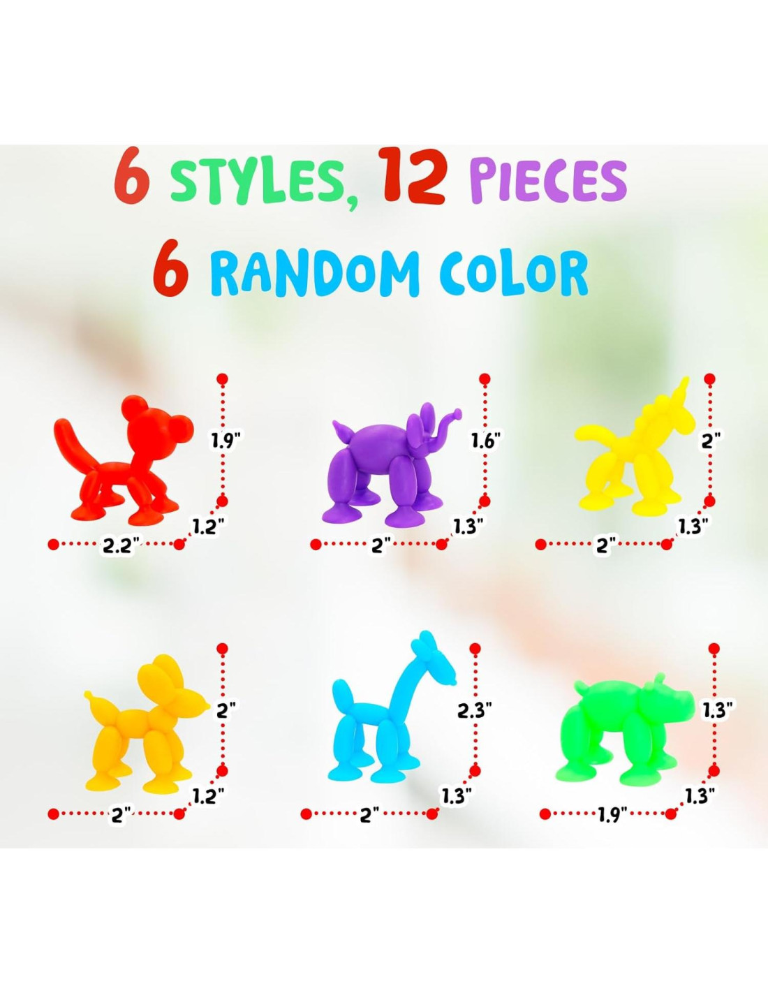 - Diseños de animales cautivadores - Incluye 12 juguetes de ventosa coloridos en seis adorables formas de animales de globo. Estos juguetes de ventosa cautivadores convierten el tiempo de juego en una aventura encantadora, capturando la imaginación de su hijo y manteniendo a estos juguetes sensoriales entretenidos durante horas.