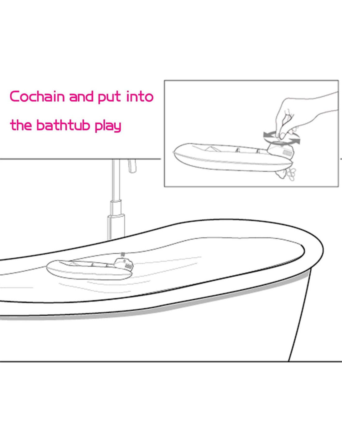 - Barco de baño, abre la tapa inflable e infla con el tubo de gas, el yate puede flotar en la superficie del agua. Instala motores de cuerda, no necesita batería, el yate puede cruzar rápidamente el agua.