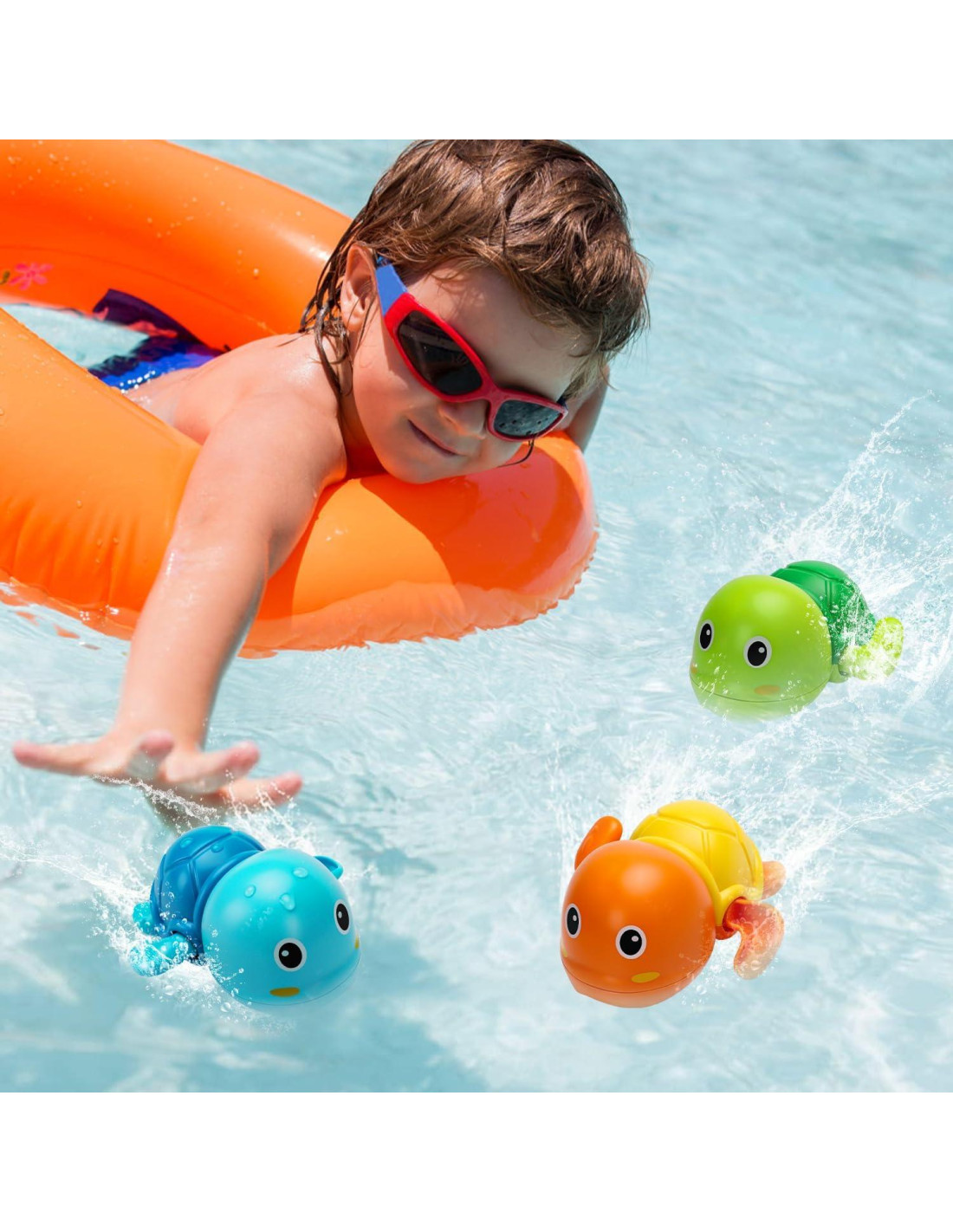 - Juguetes de Baño de Tortuga de Cuerda: El Conjunto de Juguetes de Baño de Tortuga Nadadora incluye 3 colores brillantes: Verde, Azul y Naranja. ¡La hora del baño puede ser una experiencia divertida y agradable para tus pequeños con nuestros 3 Juguetes de Baño de Tortuga Nadadora! Son juguetes de baño perfectos para bebés de 1-3 años y seguramente los mantendrán entretenidos mientras chapotean en la bañera. CONSEJOS: Los juguetes de baño de tortuga retendrán agua, por favor drena el agua a través de la boca de la tortuga después de usarlos para mantenerlos secos.