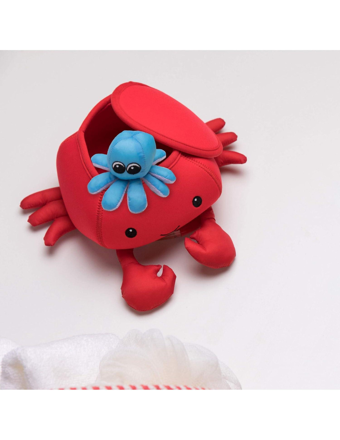 - JUGUETES DE BAÑO FLOTANTES PARA BEBÉS: Nuestro juego de baño de 5 piezas de cangrejo de neopreno incluye un feliz contenedor de almacenamiento de cangrejo de neopreno flotante con tapa y cuatro criaturas marinas de secado rápido: un pez de esponja de tela de toalla azul, una tortuga marina, un pulpo y una estrella de mar que chorrean.
