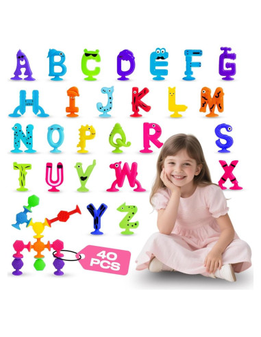 - Juego de juguetes de ventosas de ortografía de 40PCS: Este conjunto de juguetes de ventosas ABC consiste en 26 letras (A-Z) y 14 ventosas gráficas en diferentes colores. Con figuras de animales vívidas en cada letra, maximiza la atención de los niños de 3 a 5 años. ¡Construye, pega, conecta y retira! Diviértete durante unas horas con las pequeñas ventosas.