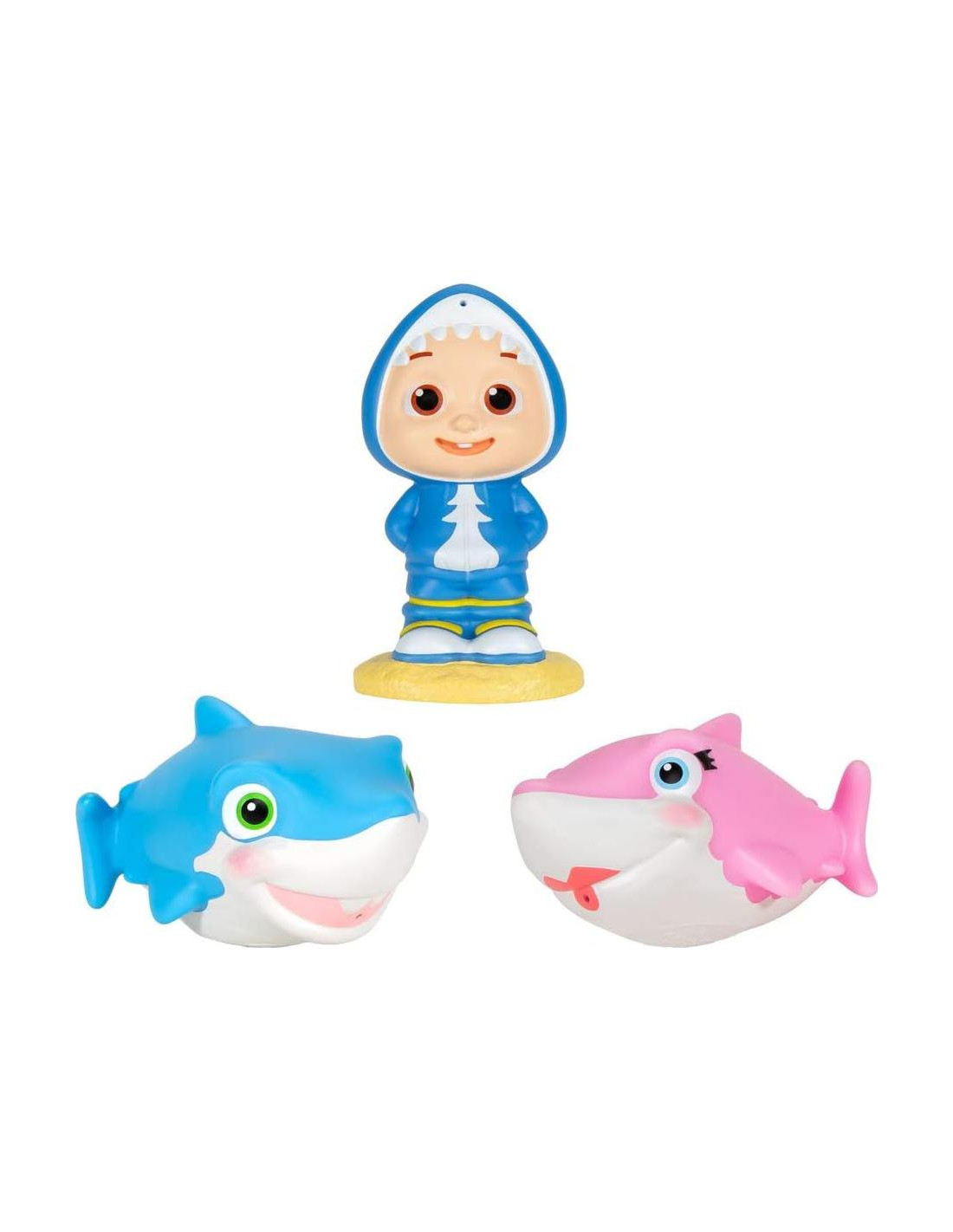 - ¡El Set de Juguetes de Baño incluye Mamá Tiburón, Papá Tiburón y J.J. en su traje de Tiburón!