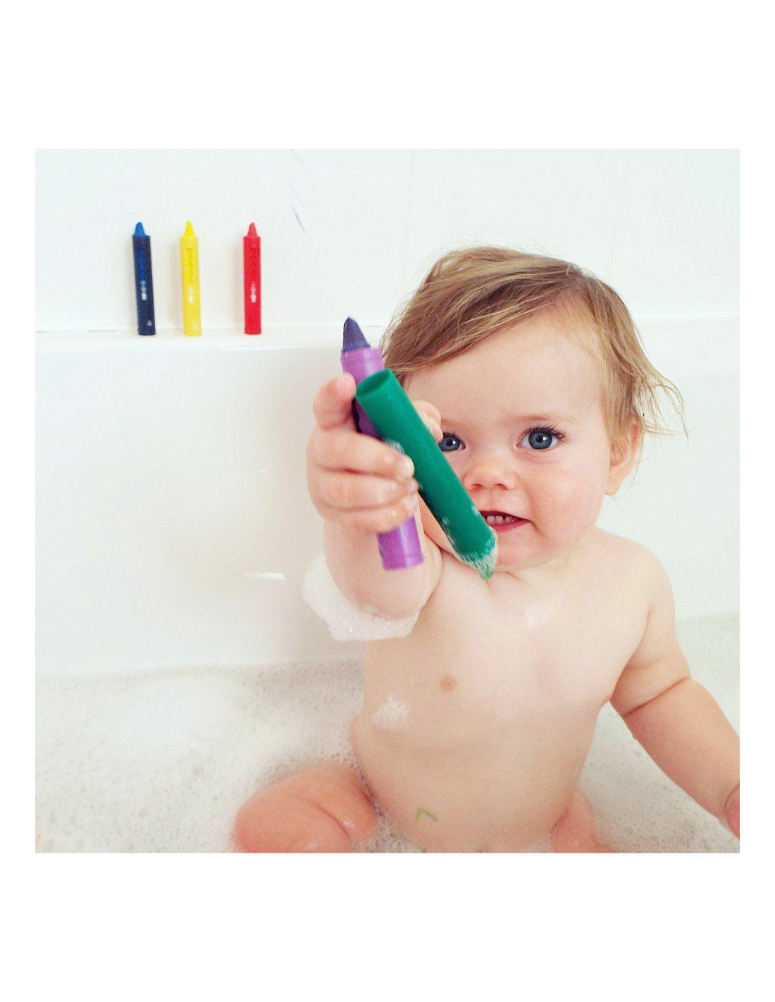 - Juego de 5 crayones divertidos y vibrantes estimulan los sentidos del bebé y promueven la creatividad. Los colores incluyen: Rojo, Amarillo, Verde, Azul y Púrpura