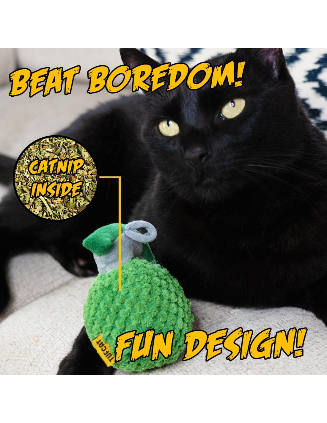 - Infundido con Hierba Gatera: Incluimos 10 gramos de hierba gatera de alta calidad en el Juguete para Gato Granada de TUFCAT para ayudar a despertar el interés de tu gato, haciendo que el tiempo de juego sea más agradable y emocionante.