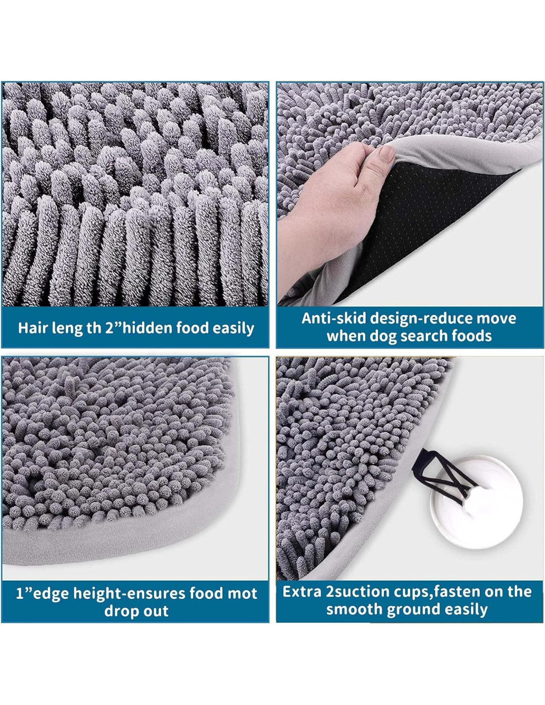 - [Pelo más grueso y borde duradero] El pelo más largo y grueso te ayuda a esconder mejor la comida, el borde evita que la comida se caiga de la alfombra. Una maravillosa alfombra de olfato puede fomentar el instinto natural de los perros, dejándolos divertirse explorando.