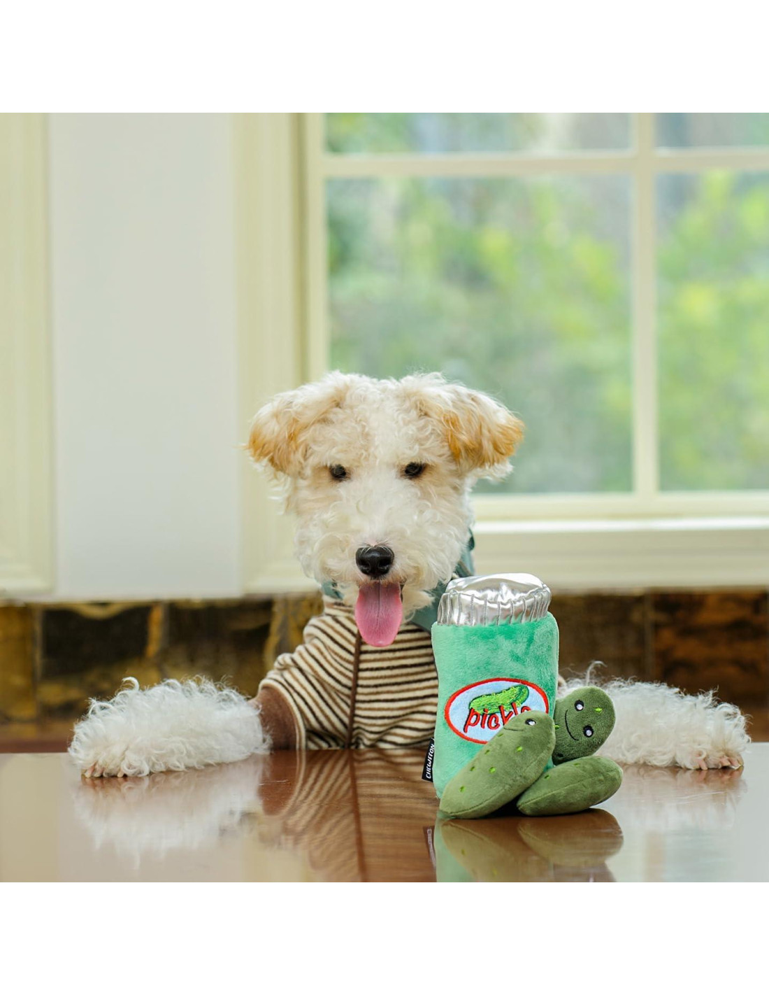 - Diseño de Pepinillo Adorable: Inspirado en los verdaderos pepinillos en tu mesa, este juguete para perros transforma el refrescante frasco de pepinillos en el compañero de peluche favorito de tu perro. Con su diseño único y creativo y su encanto super lindo, captura instantáneamente los corazones de los dueños de perros y sus amigos peludos.