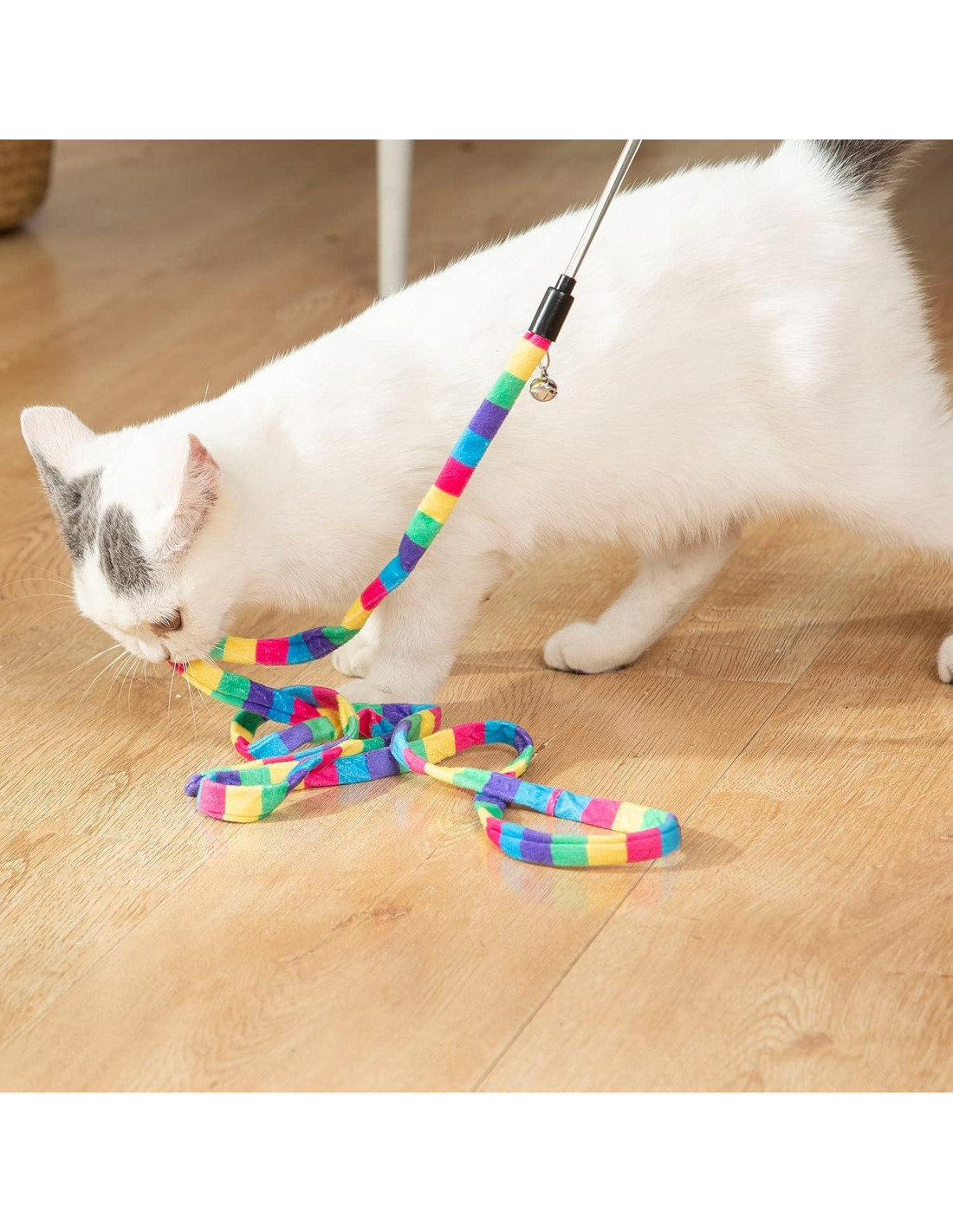 - Colores Coloridos: Las dos divertidas varitas de teaser para gatos tienen siete colores diferentes, como un arcoíris, y como un color tropical colorido, para que tu gato no se fatigue.