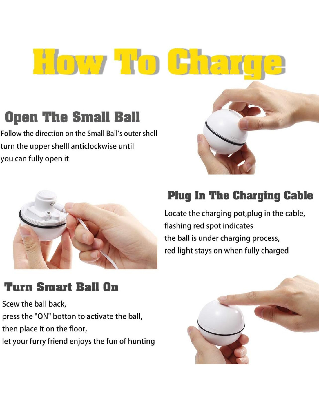 - [Cambio Automático de Dirección] Debido a la forma esférica y al sistema de autoequilibrio, la bola cambiará automáticamente su dirección al chocar con una pared, silla, puerta, etc. No se requiere ayuda adicional, solo necesitas encender la bola para jugar y apagarla cuando tu mascota se quede sin energía y termine de jugar