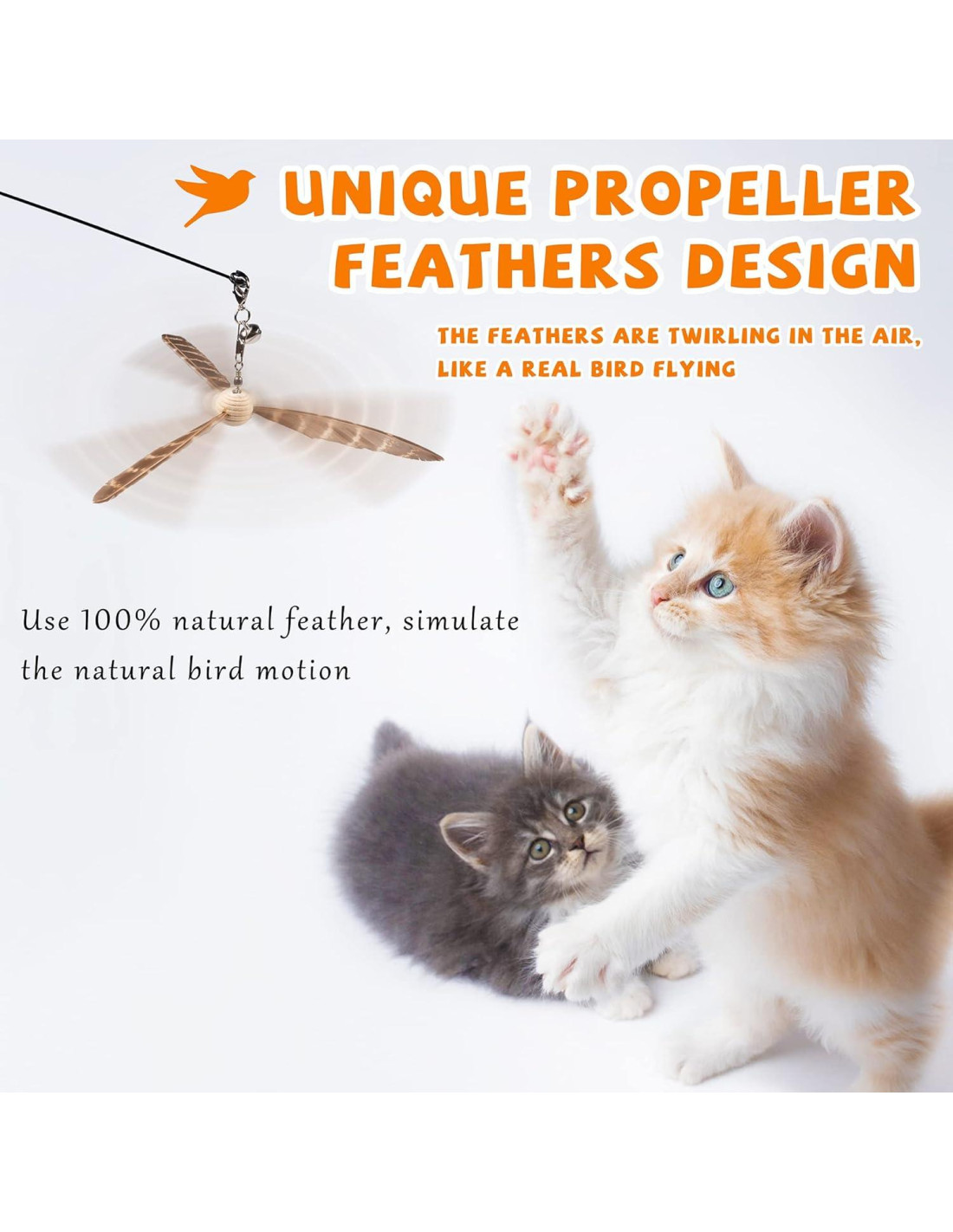 - 3 RECARGAS DE PLUMAS NATURALES: La acción de hélice de la recarga de plumas 100% naturales simula el movimiento natural de los pájaros, es seguro para que los gatos lo agarren y muerdan. El paquete de 3 plumas para gatos es para que cambies y mantengas a tu gato entretenido durante mucho tiempo.